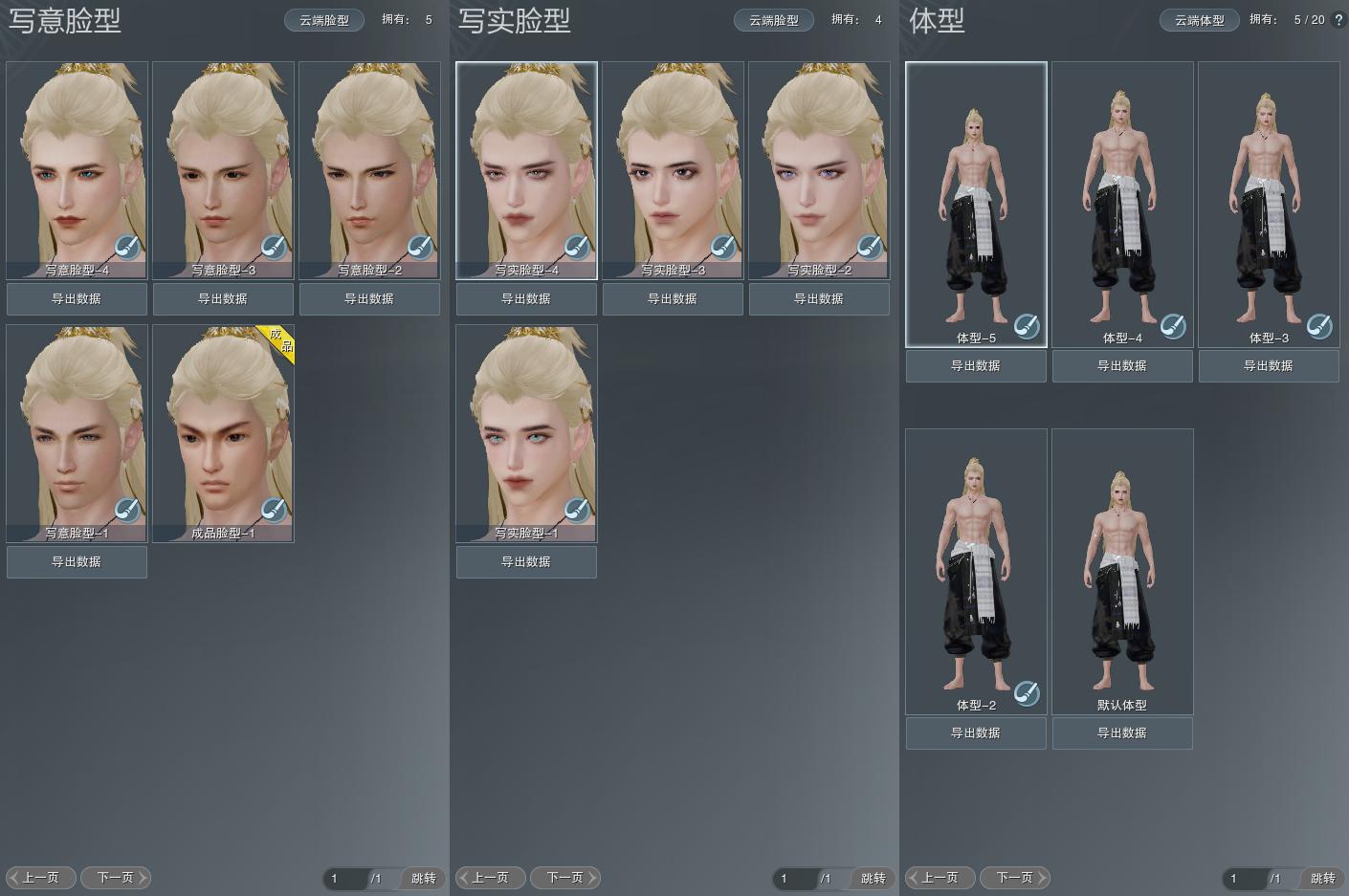 【捏脸】写意脸型5个,写实脸型4个,体型5个