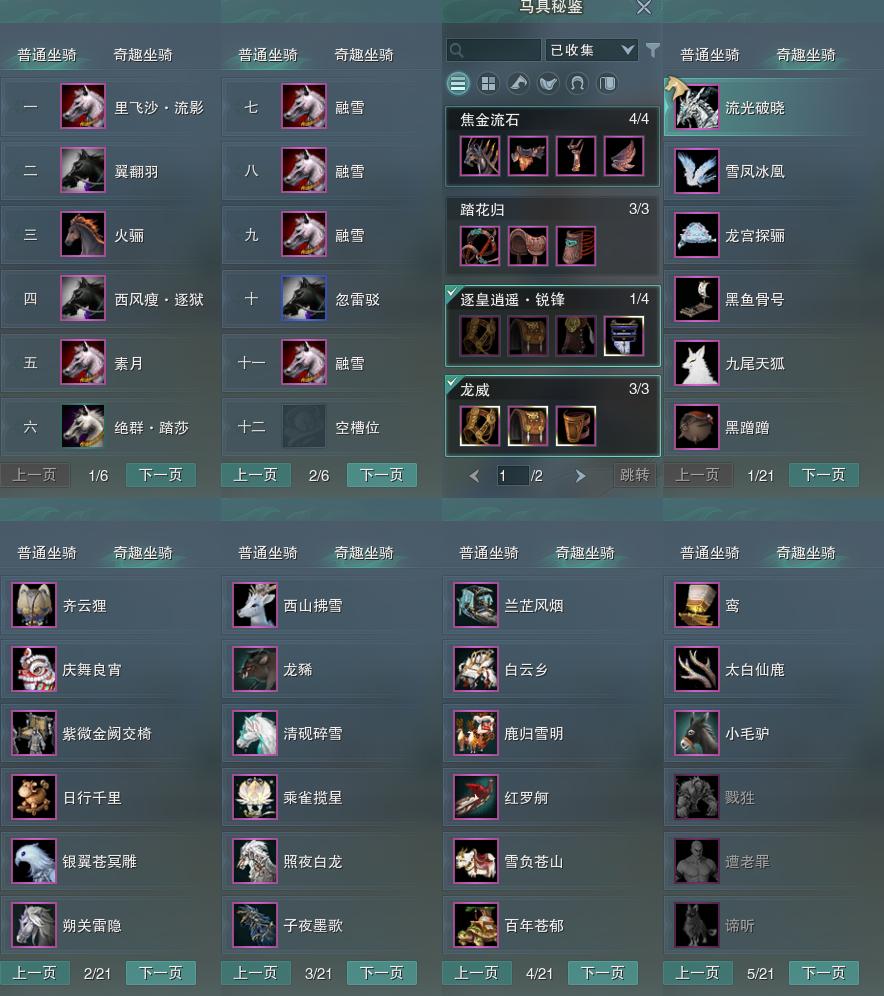 【坐骑】11个[西风瘦逐狱, 里飞沙流影]