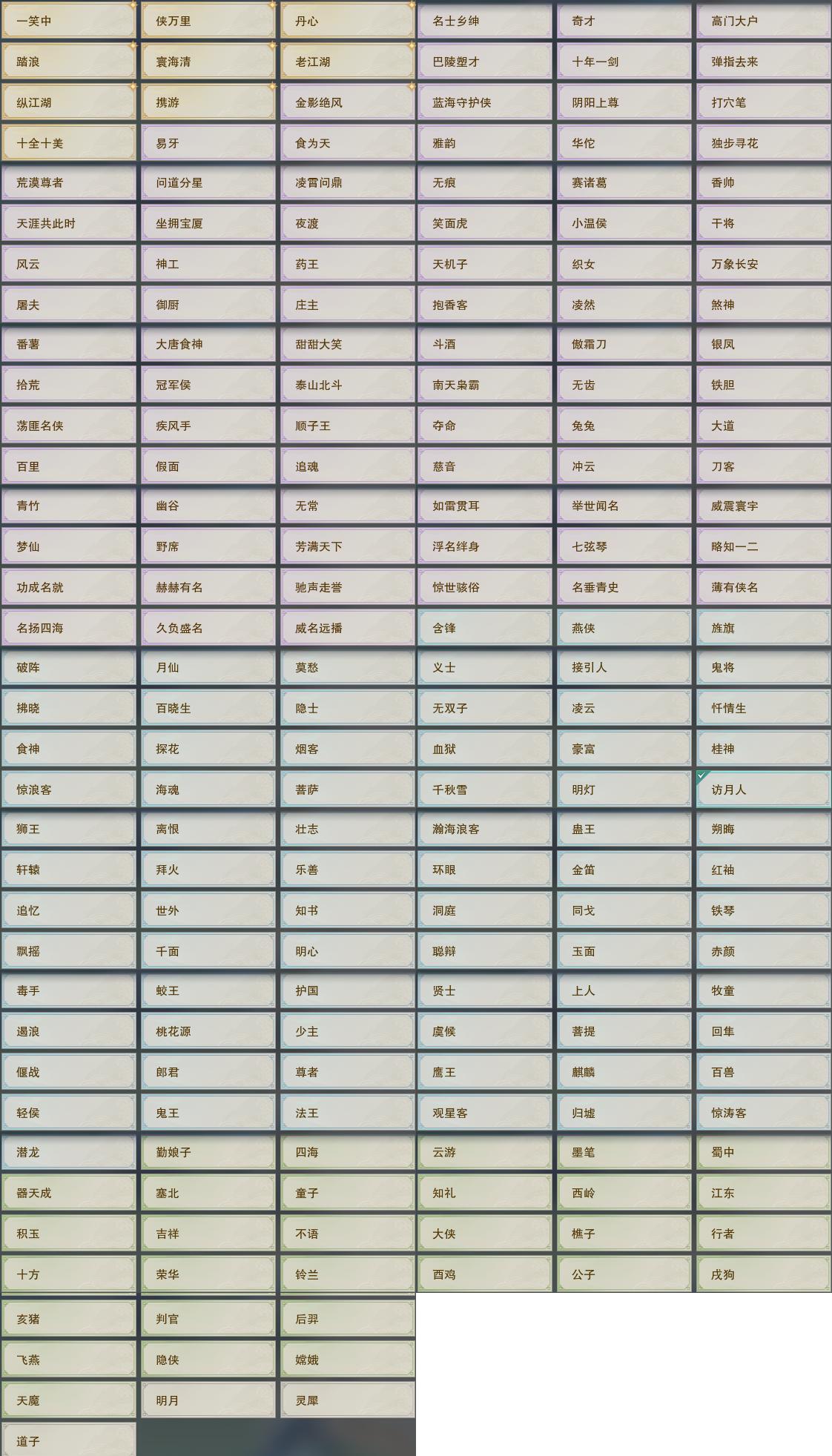 【奇珍】38个[枫林酒, 红衣歌, 归乡路, 孩童书, 捉妖记, 至尊宝, 稚子心, 青草歌, 荆轲刺, 破晓鸣]