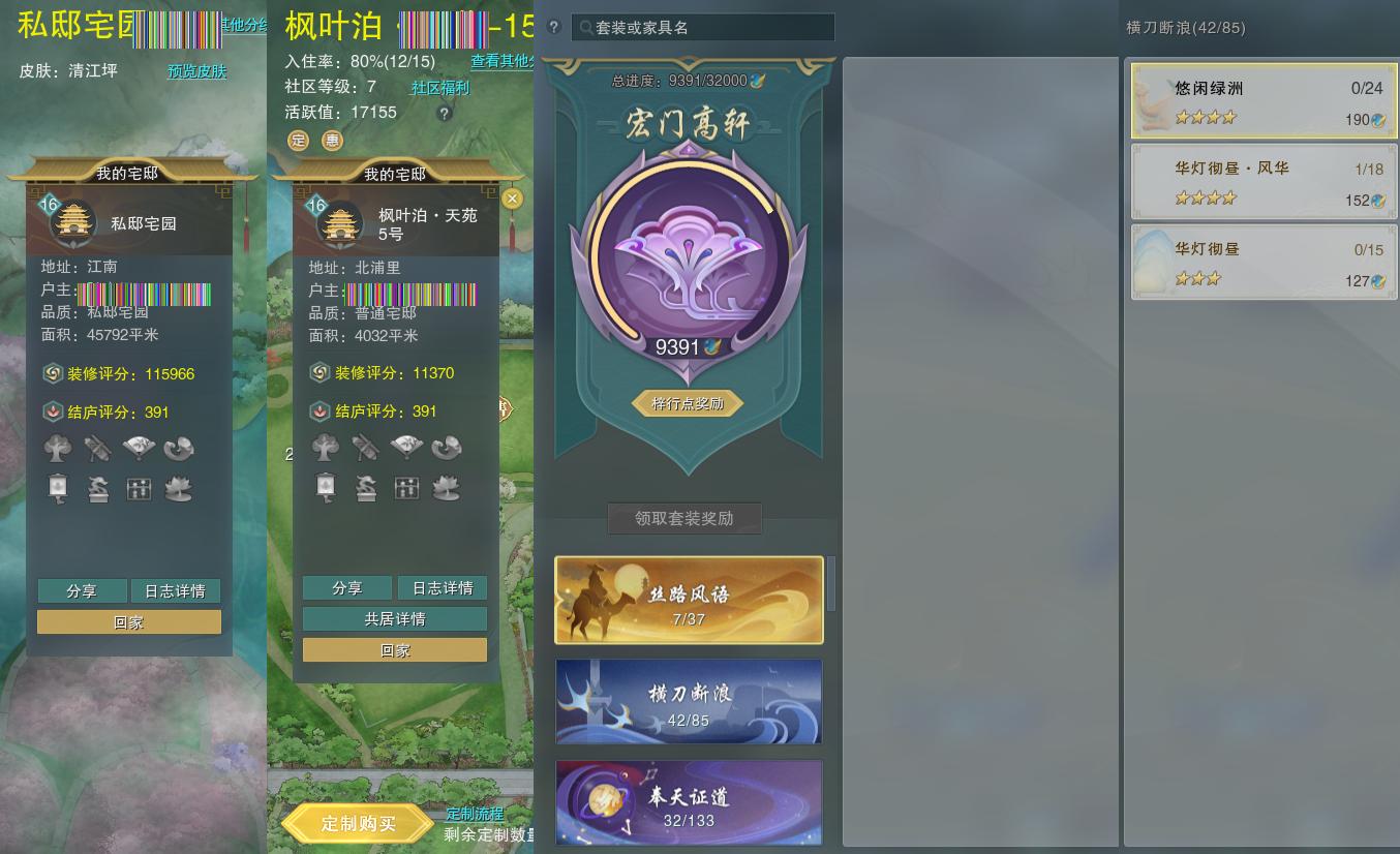 【家园】房屋等级16,社区等级了,私邸宅园,梓行点9391