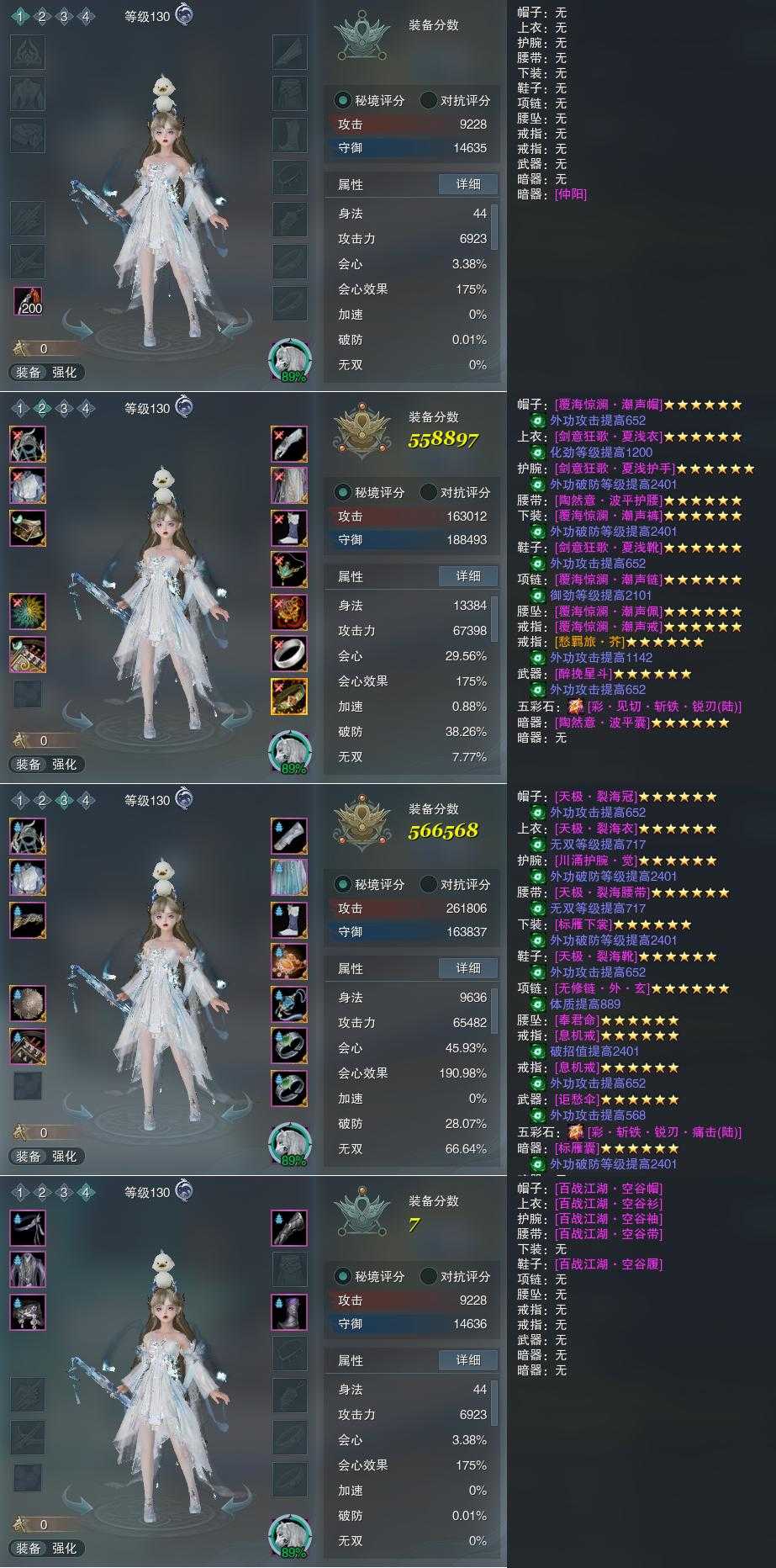 【装备】130级,装备一0,凌海诀PVP558897,凌海诀PVE566568,装备四7