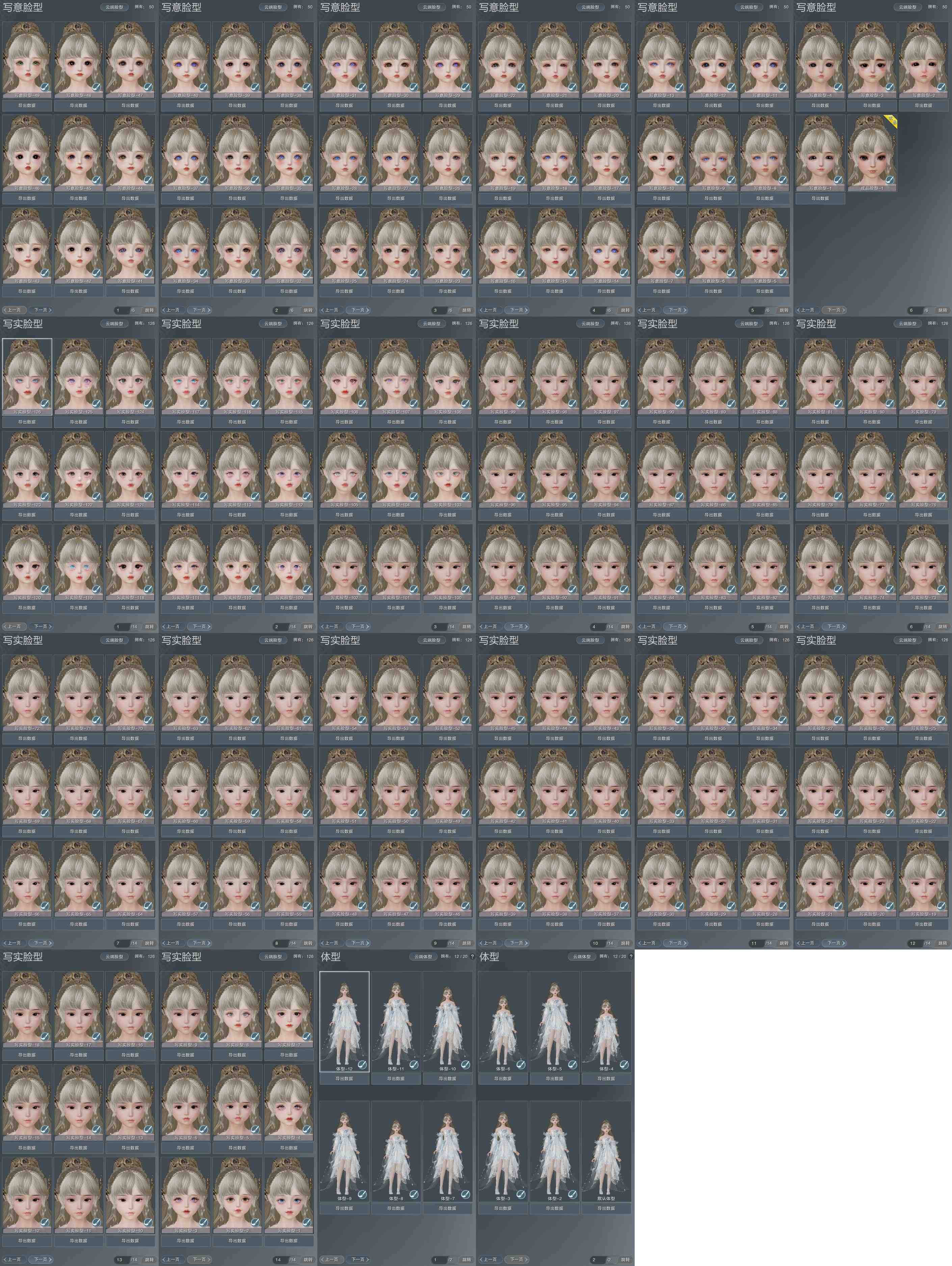 【捏脸】写意脸型50个,写实脸型126个,体型12个