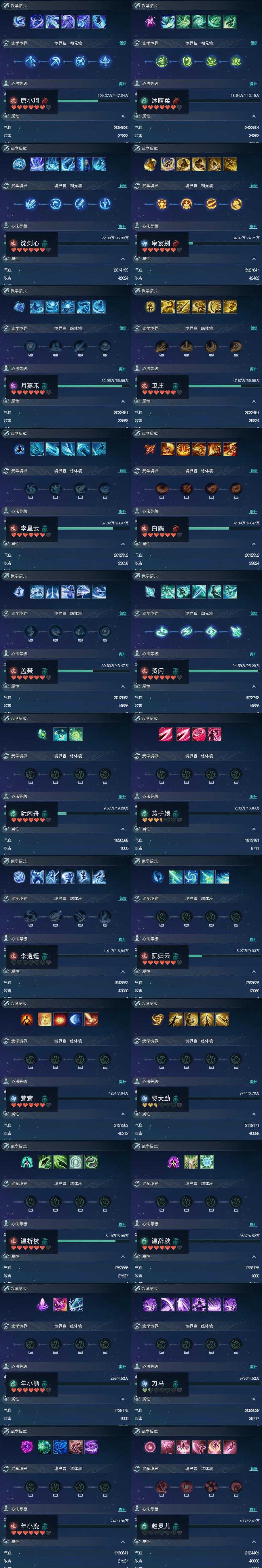 【同伴】唐小珂87级境界伍,沐晴柔85级境界伍,沈剑心85级境界伍,康宴别82级境界伍,月嘉禾80级境界壹,卫庄80级境界壹,李星云78级境界壹,白鹊78级境界壹,盖聂78级境界壹,贺闲74级境界伍,阮闲舟72级境界壹,燕子娘71级境界壹,李逍遥71级境界壹,阮归云67级境界壹,茸茸65级境界壹,费大劲64级境界壹,温折枝63级境界壹,温辞秋61级境界壹,年小熊61级境界壹,刀马61级境界壹,年小鹿60级境界壹,赵灵儿57级境界壹