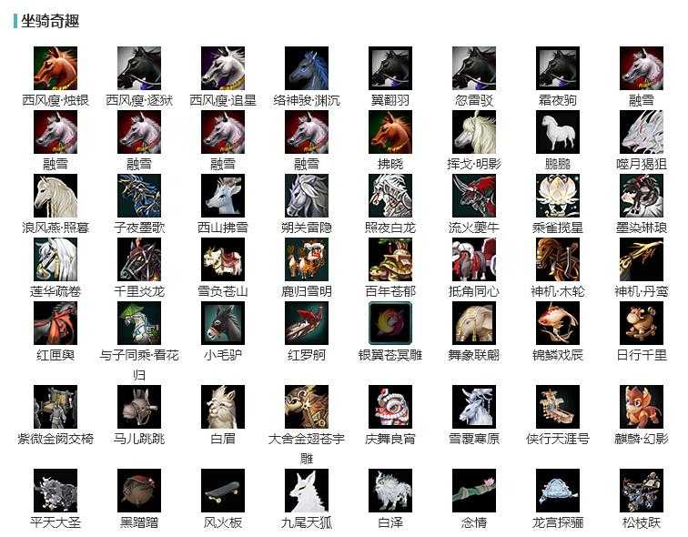 【坐骑】7个[西风瘦烛银, 西风瘦逐狱, 西风瘦追星, 阵营白狼, 络神骏渊沉, 挥戈明影, 鹏鹏]
