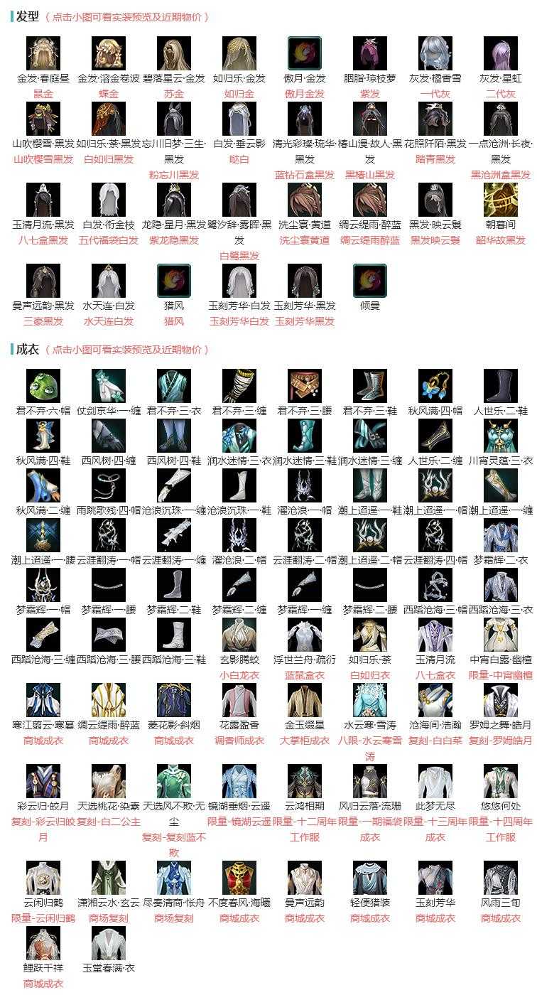 限时限量:[云闲归鹤, 镜湖云遥, 水云寒雪涛, 十三周年成衣, 十四周年工作服, 十二周年工作服, 中宵幽檀, 一期福袋成衣]