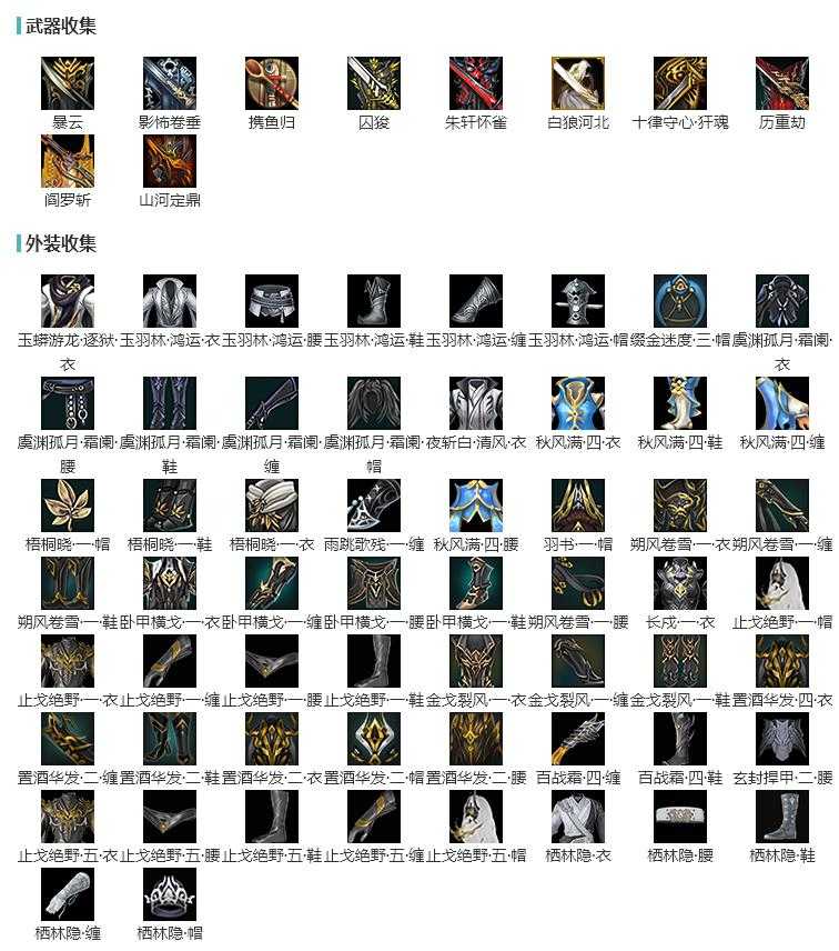 【肩饰】12左,10右,[歃血关山·左, 盘龙凤舞·左, 琼羽飞鸿·左, 赤羽逍遥·左, 华焰披锦·左, 漱玉寒·冰青·左, 双鱼曳波·极乐·左][歃血关山·右, 盘龙凤舞·右, 琼羽飞鸿·右, 漱玉寒·冰青·右]