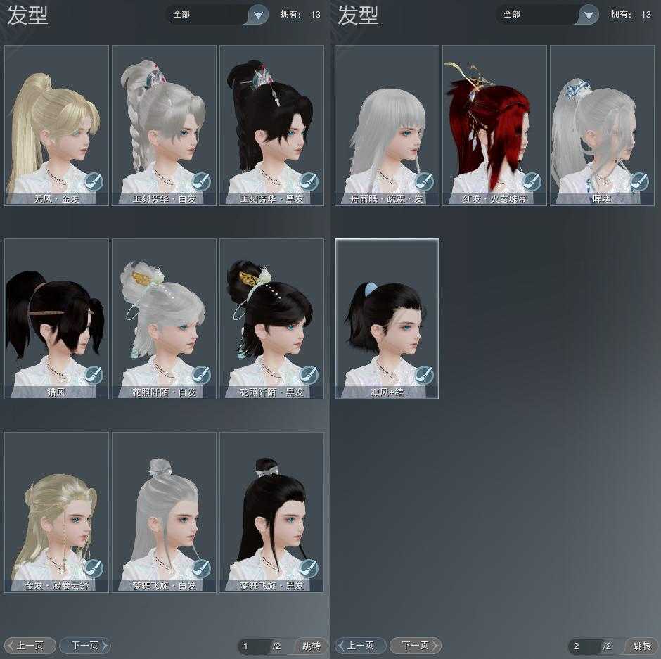 【发型】金发2个[云金, 无风金发], 红发1个[六红], 黑发4个, 白发4个, 盒子发型[小熊黑发, 小熊白发, 踏青黑发, 踏青白发], 总页数2