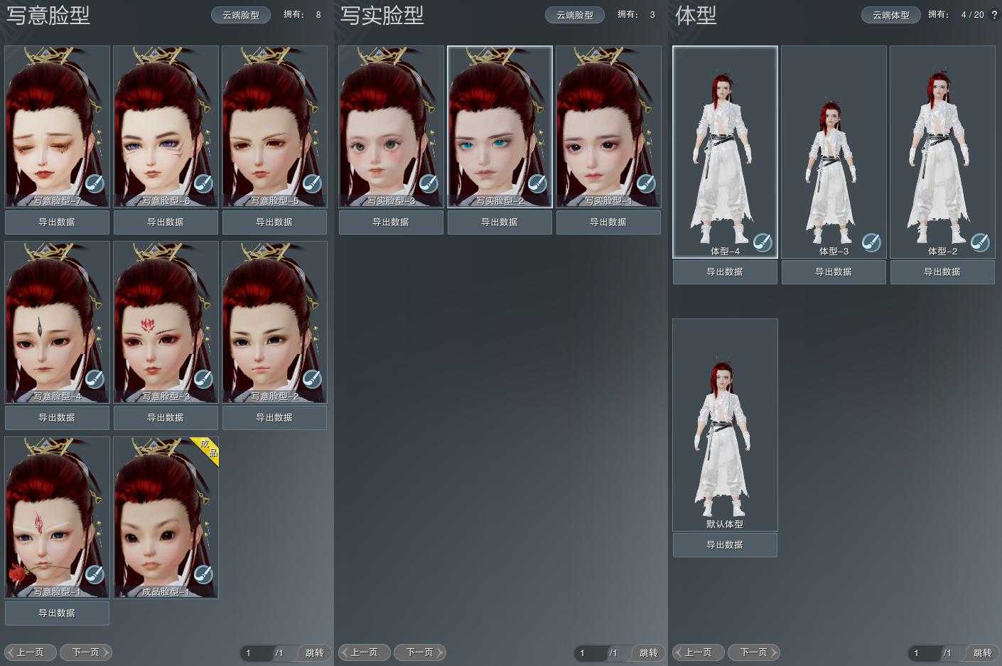 【捏脸】写意脸型8个,写实脸型3个,体型4个