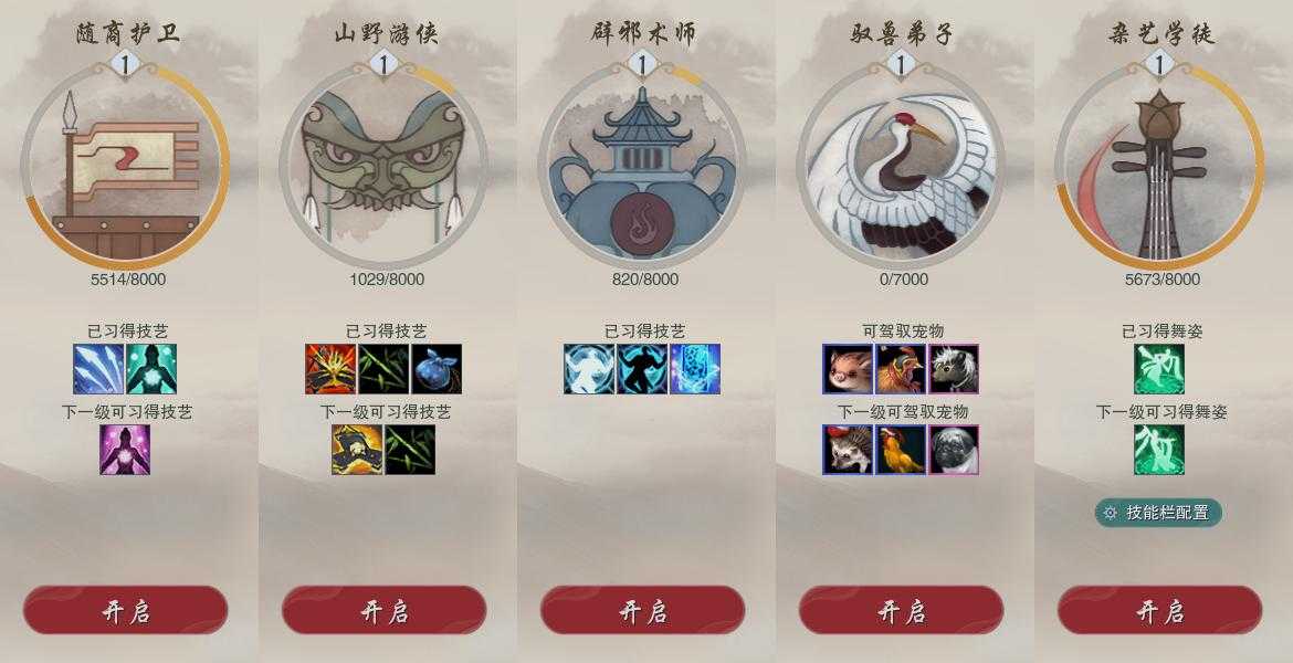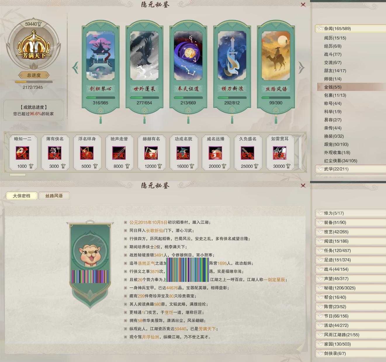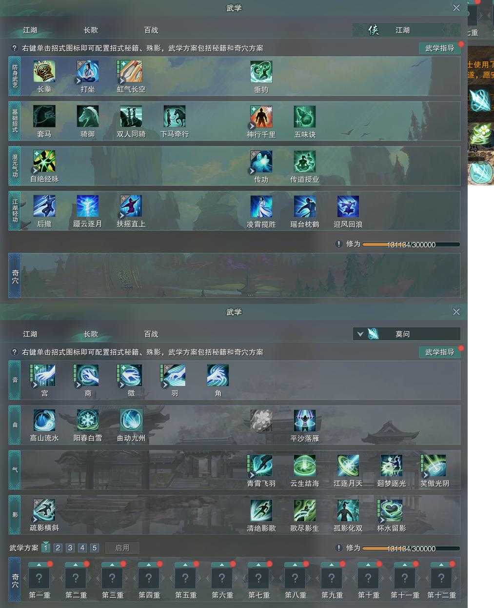 【奇遇】12个[天涯无归, 平生心愿, 扶摇九天, 寻猫记, 庆舞良宵, 凌云梯, 炼狱厨神, 度人心, 旧宴承欢, 侠者成歌, 拜春擂, 沙海劫缘]