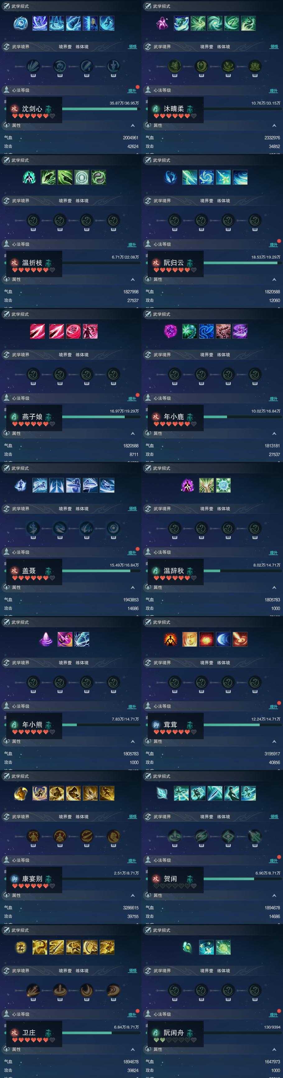 【同伴】沈剑心78级境界壹,沐晴柔76级境界壹,温折枝73级境界壹,阮归云72级境界壹,燕子娘72级境界壹,年小鹿71级境界壹,盖聂71级境界壹,温辞秋70级境界壹,年小熊70级境界壹,茸茸70级境界壹,康宴别66级境界壹,贺闲66级境界壹,卫庄66级境界壹,阮闲舟49级境界壹