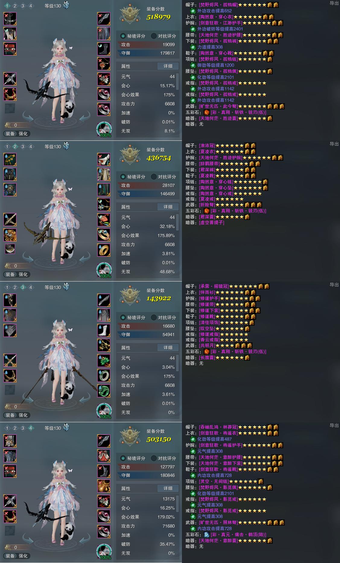 【装备】130级,惊羽诀PVP518979,惊羽诀PVE436754,装备三143922,天罗诡道PVP503150