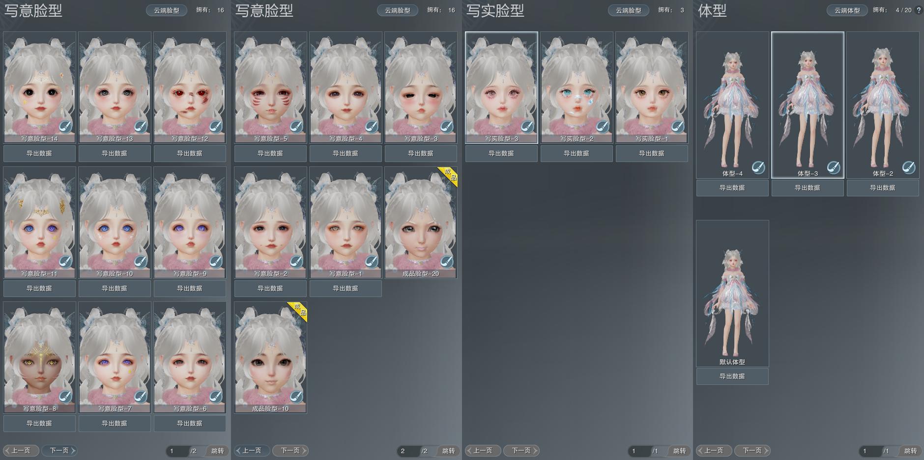 【捏脸】写意脸型16个,写实脸型3个,体型4个