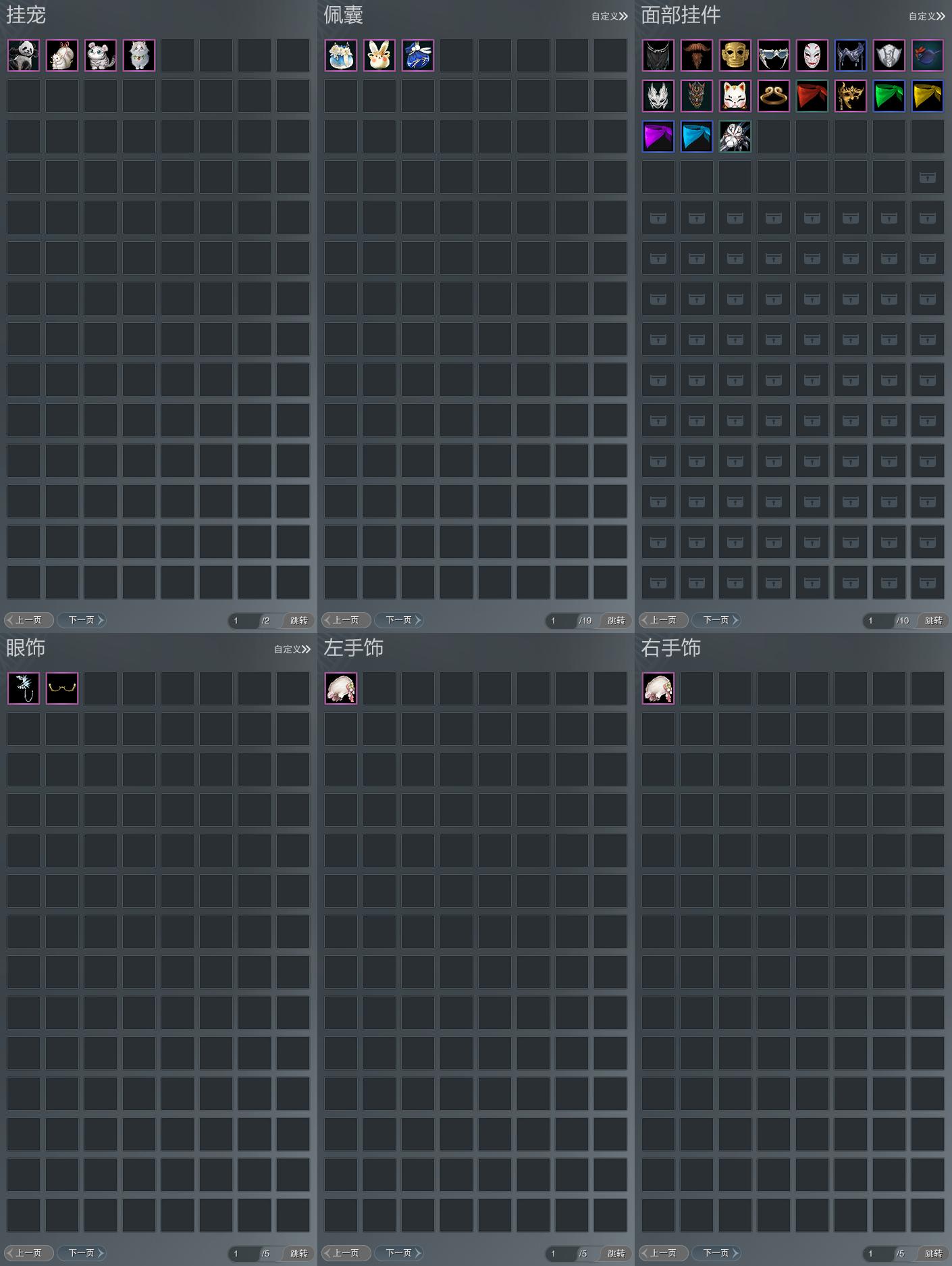 盒子:[叽盒, 二代花朝盒, 红盒, 一七盒, 二七盒, 一中粉盒, 白腿盒, 蓬莱盒, 唐盒, 白盒, 一代元宵, 一代花朝黄盒, 绿琼枝盒(豪), 黑楼兰盒(缺白发), 小熊盒(缺白发), 柿盒, 重花游盒, 云间盒, 星辰盒, 羊盒, 雏菊盒, 白雪人盒, 紫人间盒(豪), 白爻月祭(豪), 梦盒, 瑞雪盒, 潮涌盒, 仙剑盒, 络羽盒, 发财盒(标)]