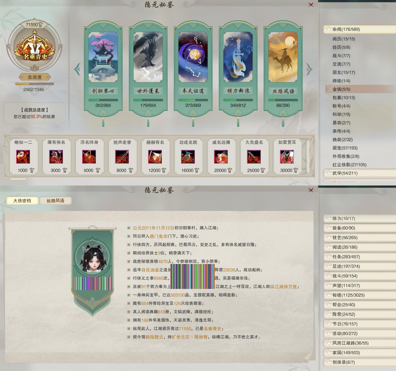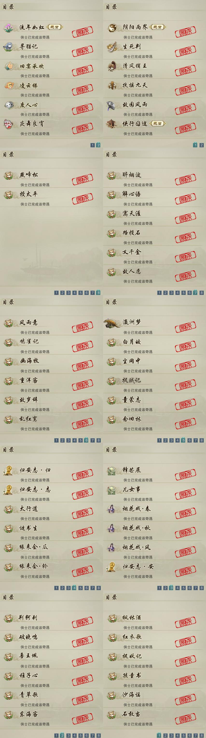 【奇遇】12个[阴阳两界, 扶摇九天, 故园风雨, 流年如虹, 清风捕王, 寻猫记, 侠行囧途, 庆舞良宵, 生死判, 凌云梯, 度人心, 旧宴承欢]