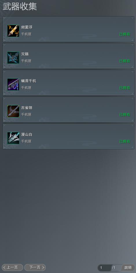 【拓印】6页外观收集,5武器拓印,拓印100CW螭首千机,拓印110CW古雀翎