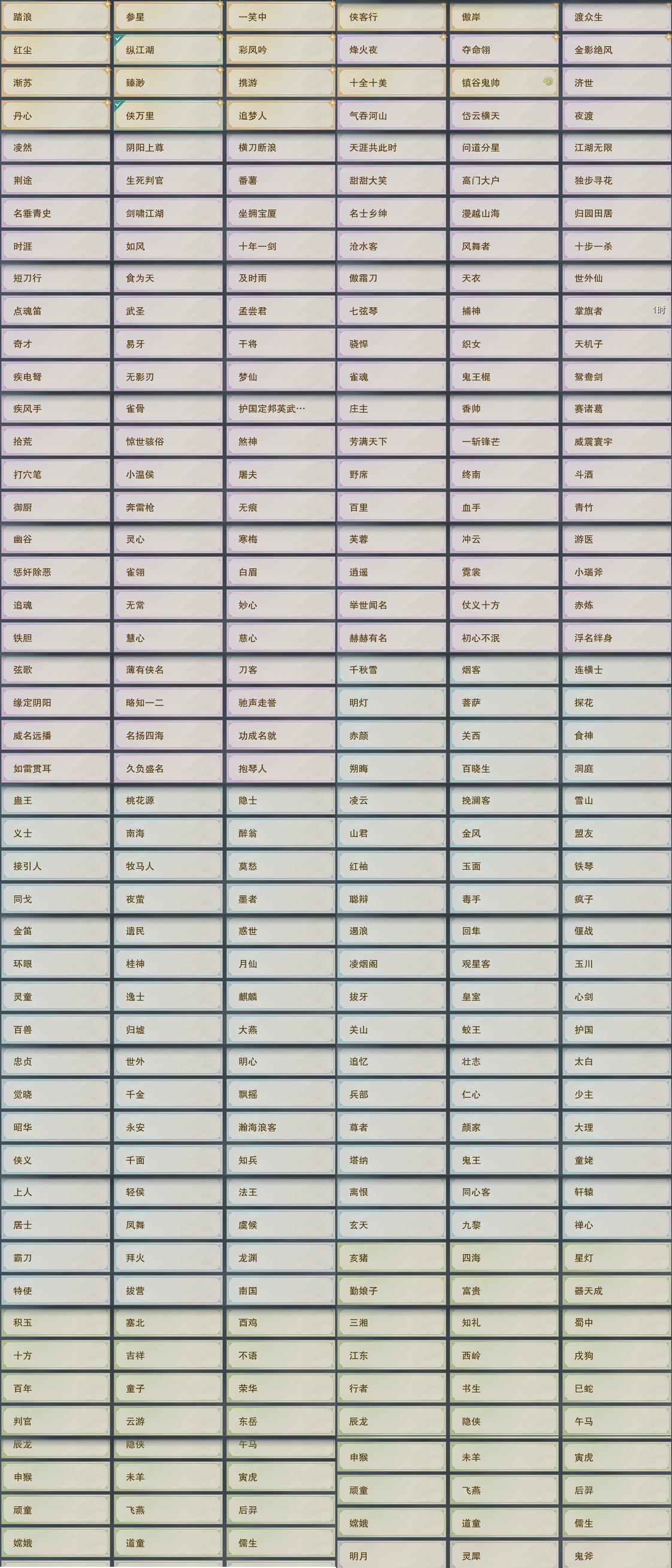 【称号】[夺命翎, 纵江湖, 侠万里]