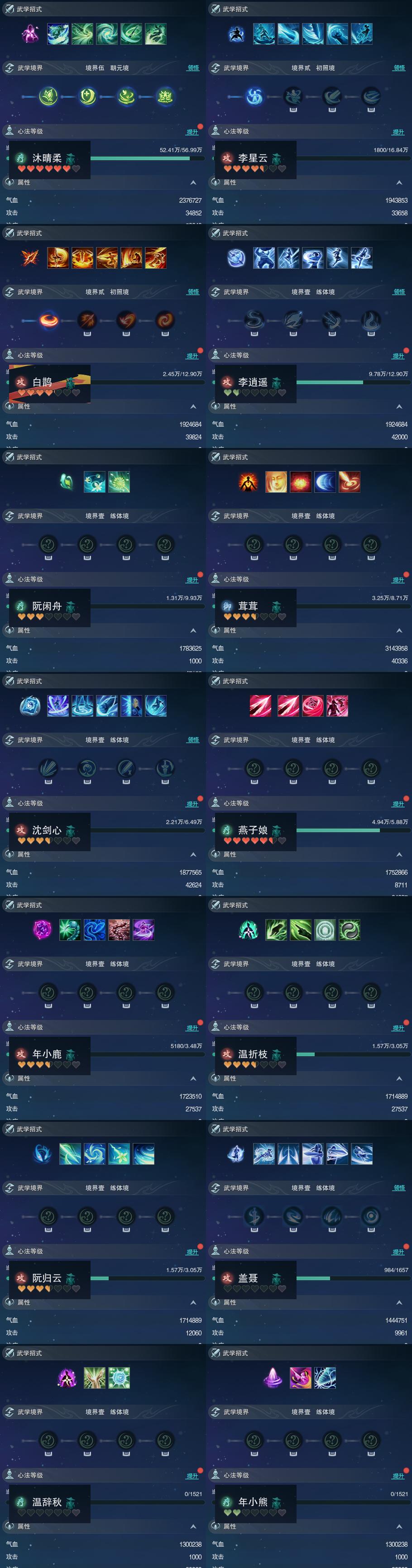 【同伴】沐晴柔80级境界伍,李星云71级境界贰,白鹊69级境界贰,李逍遥69级境界壹,阮闲舟67级境界壹,茸茸66级境界壹,沈剑心65级境界壹,燕子娘63级境界壹,年小鹿59级境界壹,温折枝58级境界壹,阮归云58级境界壹,盖聂17级境界壹,温辞秋1级境界壹,年小熊1级境界壹