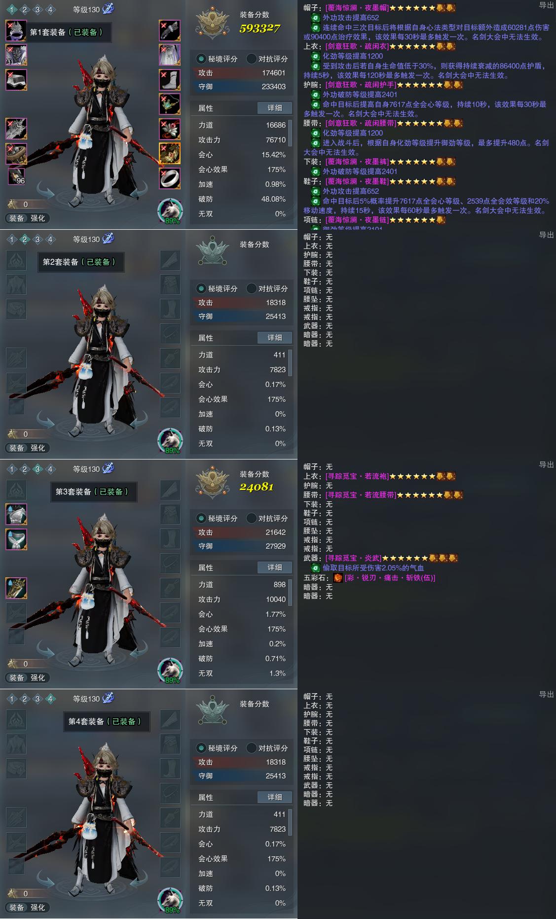 【装备】130级,北傲诀PVP593327,装备二0,装备三24081,装备四0