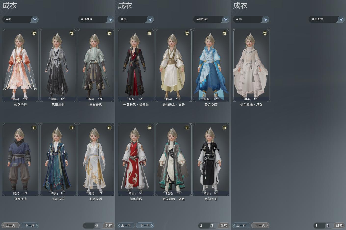 【成衣】总计13件,单盒成衣3件,限时限量4件,商城6件,下架0件