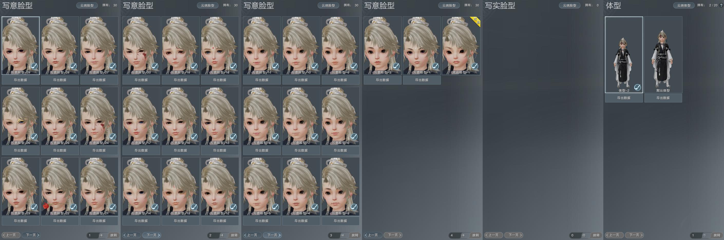 【捏脸】写意脸型30个,写实脸型0个,体型2个