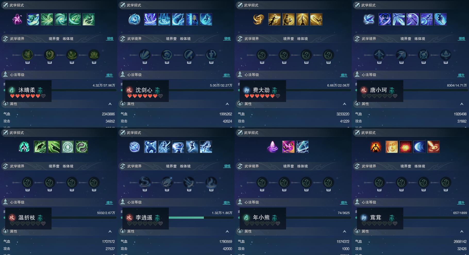 【同伴】沐晴柔77级境界壹,沈剑心77级境界壹,费大劲73级境界壹,唐小珂70级境界壹,温折枝57级境界壹,李逍遥54级境界壹,年小熊39级境界壹,茸茸28级境界壹