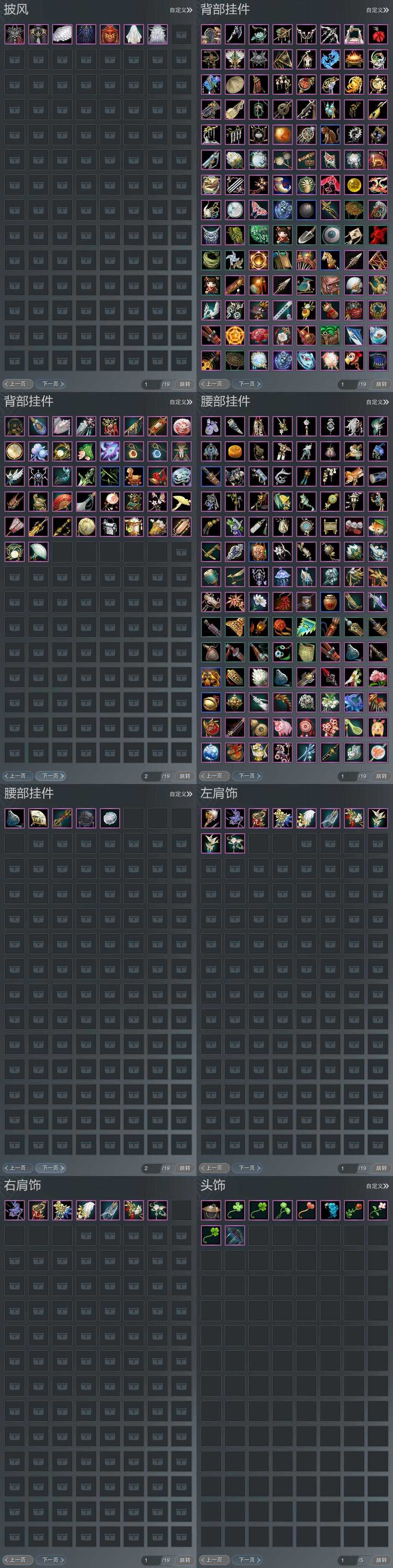 【肩饰】10左,7右,[虞渊引梦·左, 日月无心·左, 云中雪霁·左, 碧海云仙·左][虞渊引梦·右, 日月无心·右, 云中雪霁·右, 碧海云仙·右]
