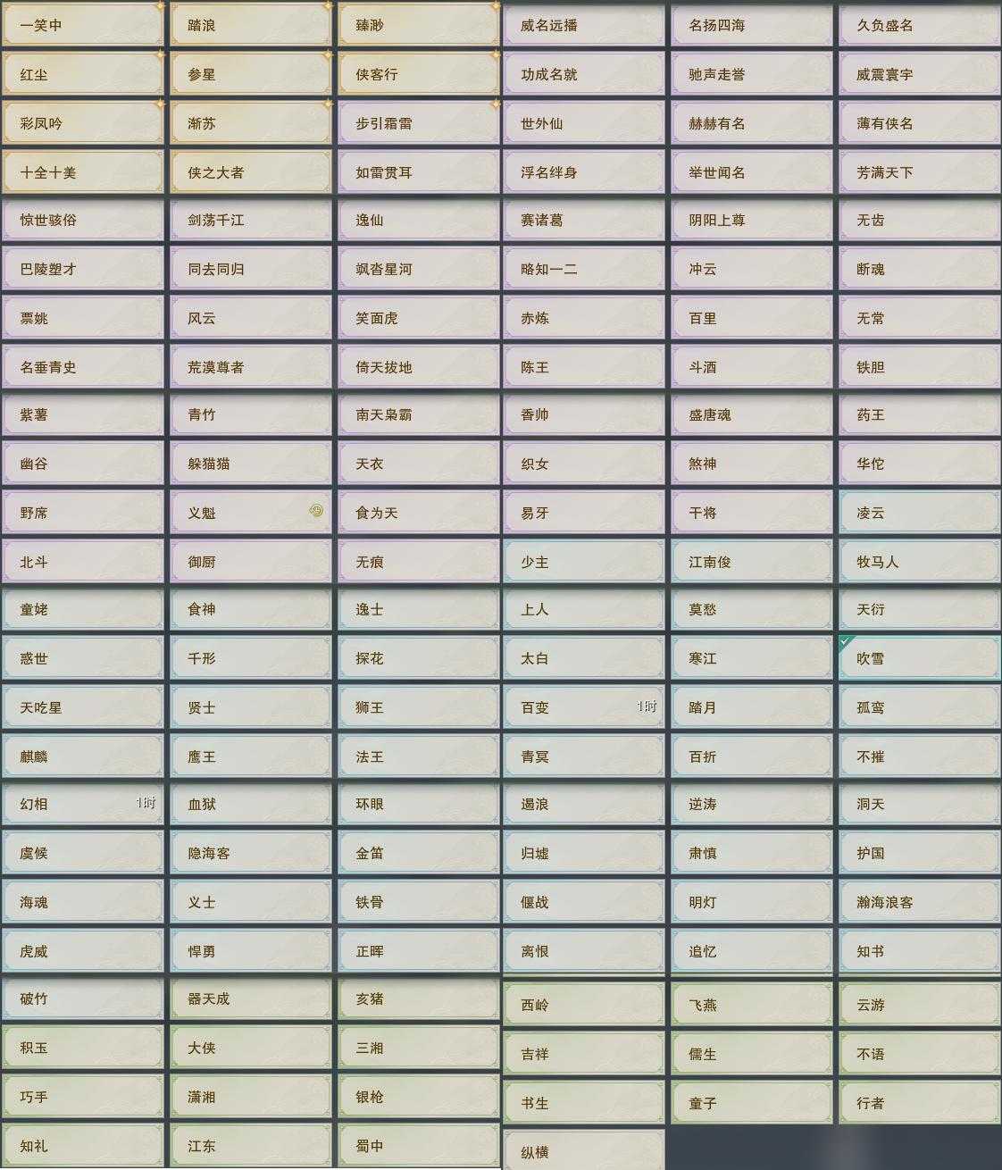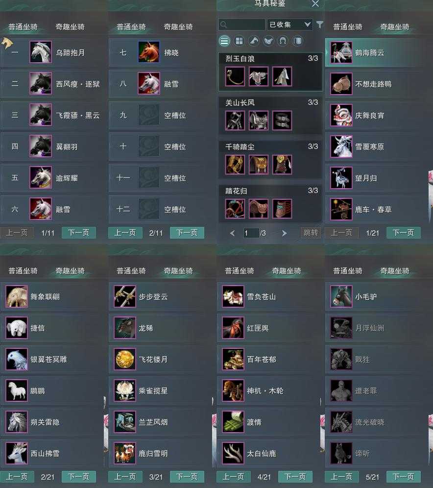 【坐骑】8个[西风瘦逐狱, 飞霞骠黑云, 乌蹄抱月]