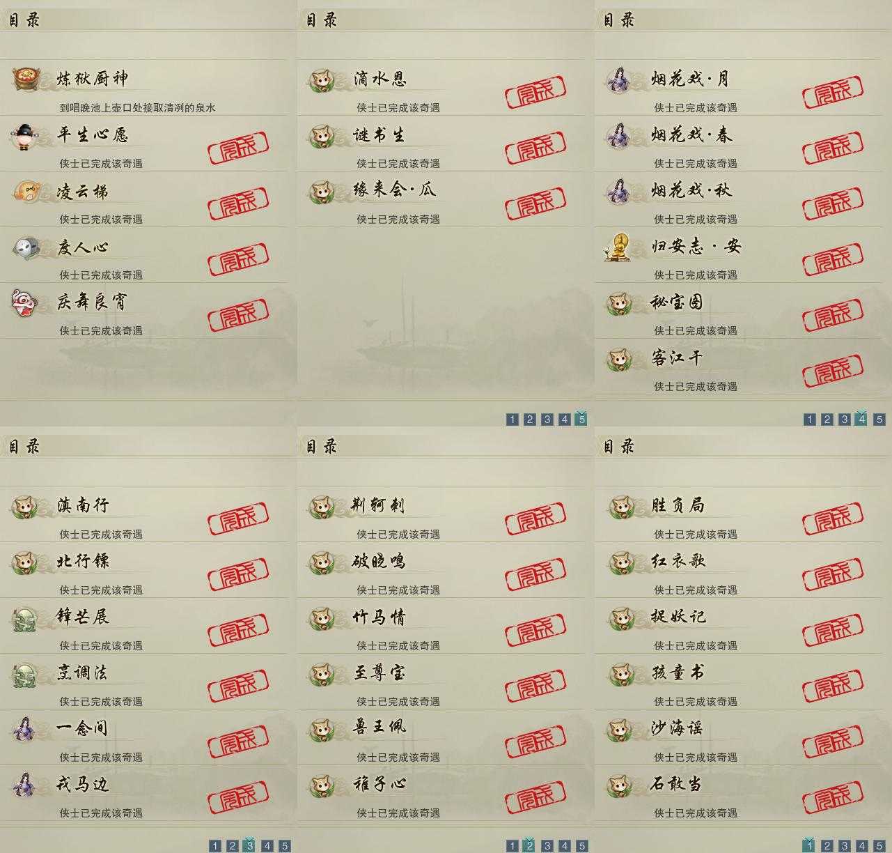 【奇遇】5个[平生心愿, 庆舞良宵, 炼狱厨神, 凌云梯, 度人心]