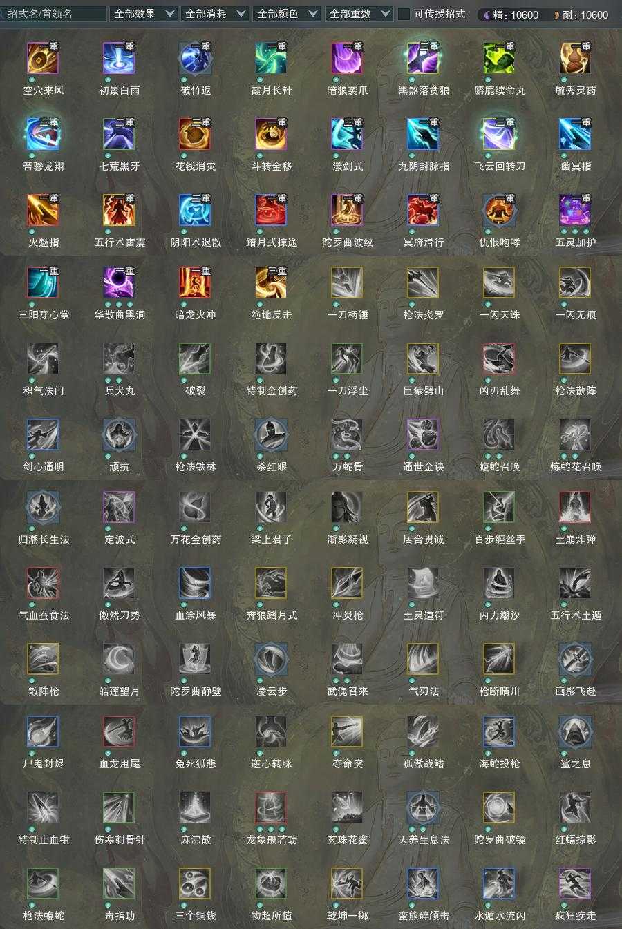 复刻:[白白菜, 黑潇湘, 望月蝉谷, 罗姆叠银, 罗姆婵娟, 罗姆皓月, 锦衣行谒游, 彩云归落雪, 彩云归素青, 天河清晏, 夜隐仙皓霜, 夜隐仙翠庭, 夜隐仙酹月, 夜隐仙凋枫, 夜斩白孤云, 夜斩白暮长, 彩云归皎月, 尽奏怅舟, 尽奏折笺, 一梦辰风]