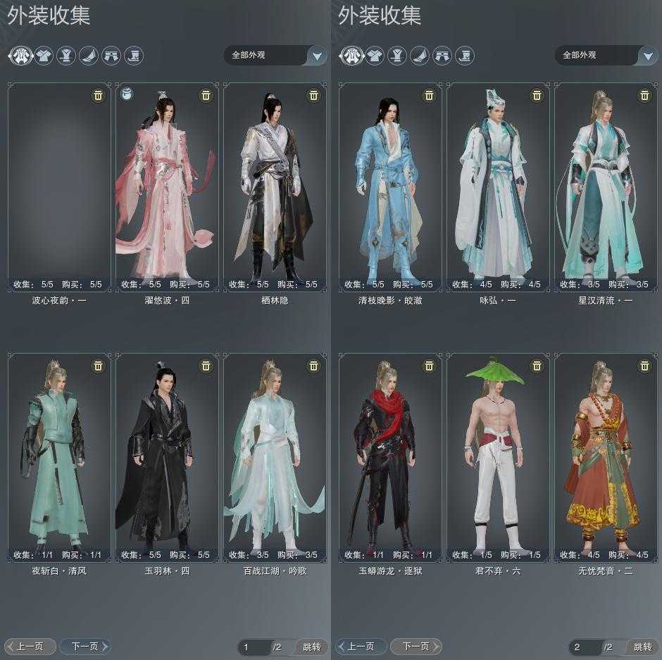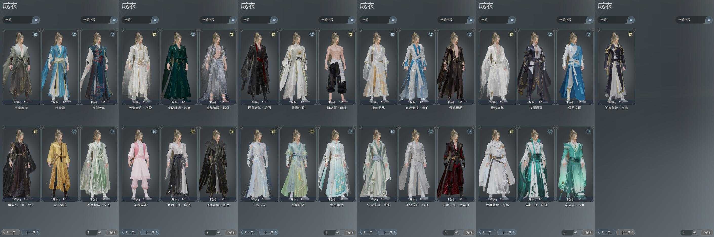限时限量:[兰庭冷绣, 烟花套, 黑枕戈, 镜湖踏晓, 十二周年工作服, 客行逍遥天旷, 十三周年成衣, 粉水母, 十四周年工作服, 云闲归鹤, 白绮阁]