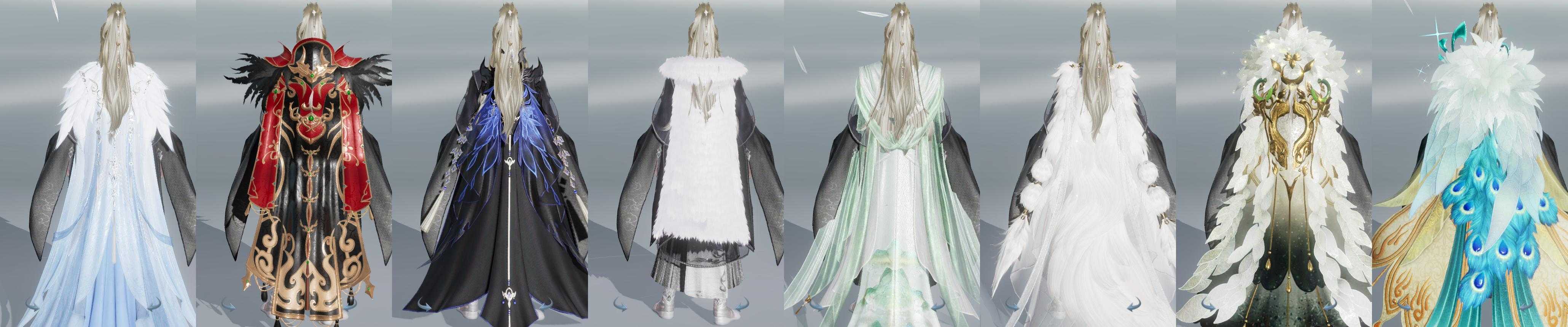 【披风】18个,[7W资历披风, 夜泊蝶影, 情R枕, 孔雀披风, 新青盒子披风, 素玉, 白狐裘, 空山闲雪]
