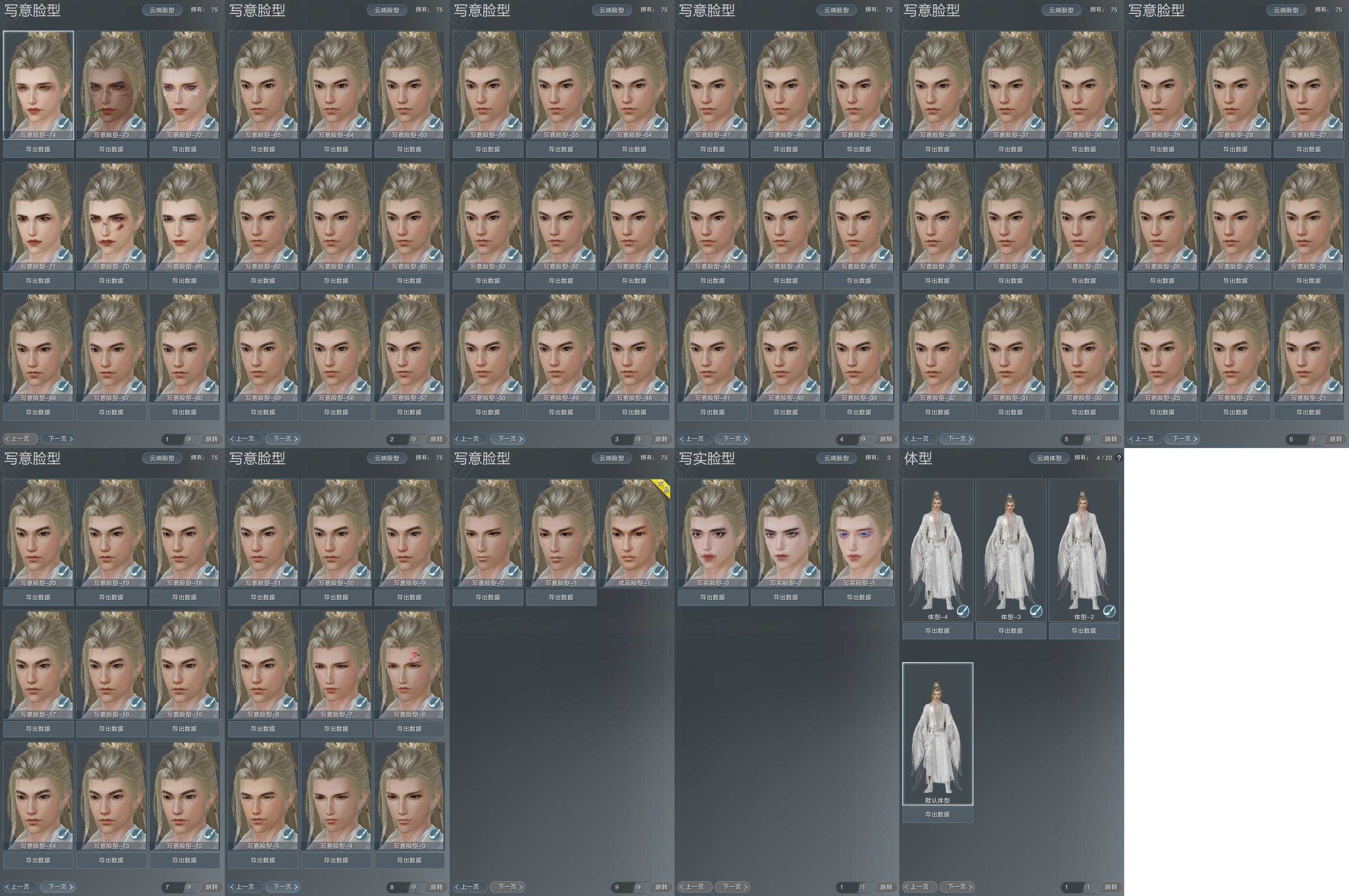 【捏脸】写意脸型75个,写实脸型3个,体型4个