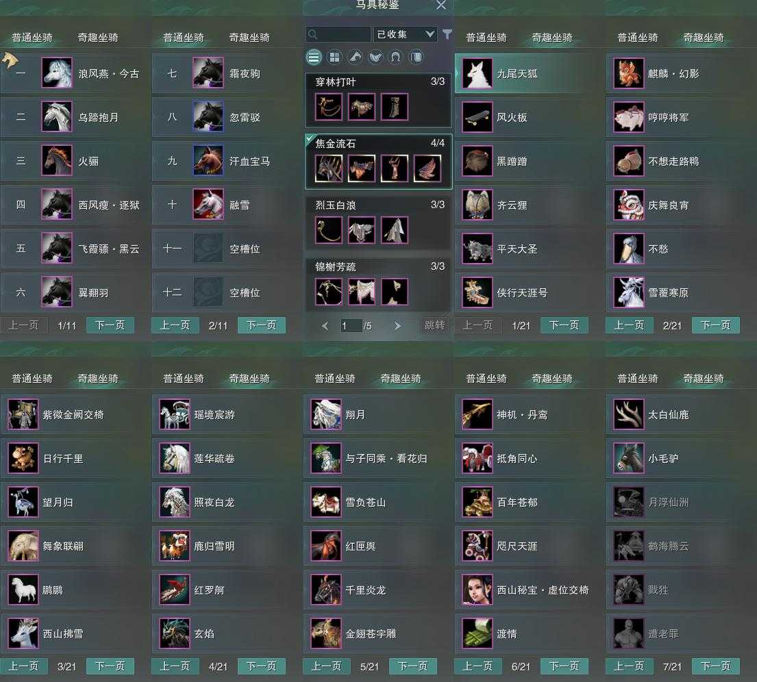 【坐骑】10个[西风瘦逐狱, 飞霞骠黑云, 乌蹄抱月, 浪风燕今古]