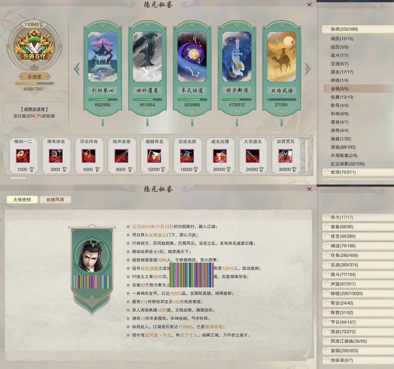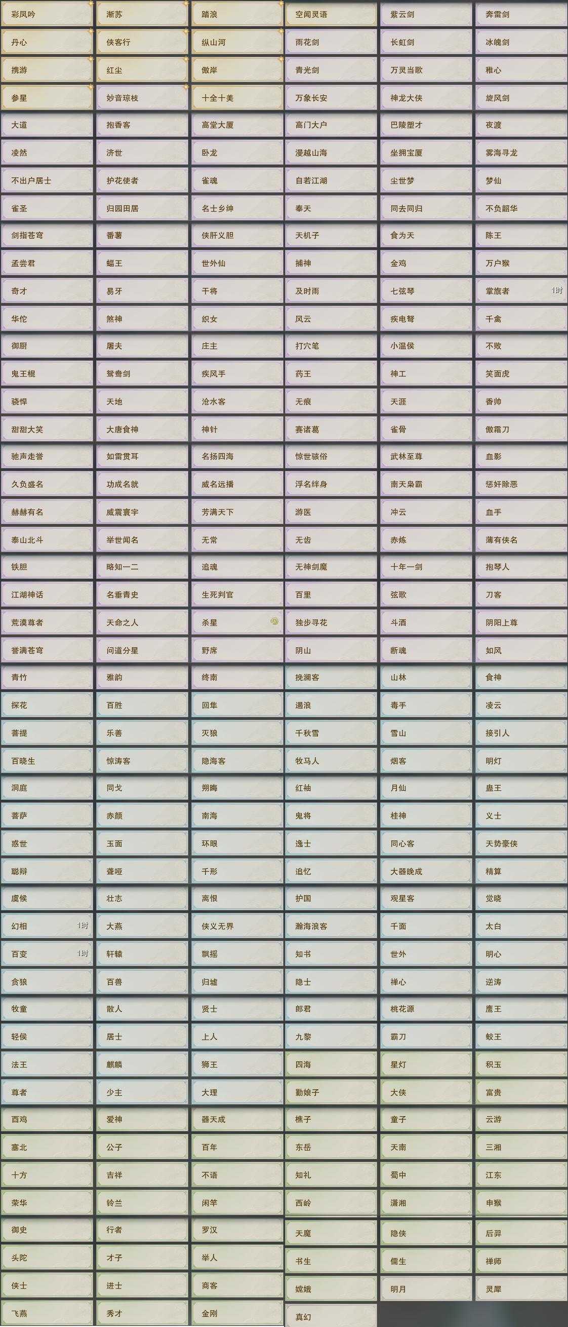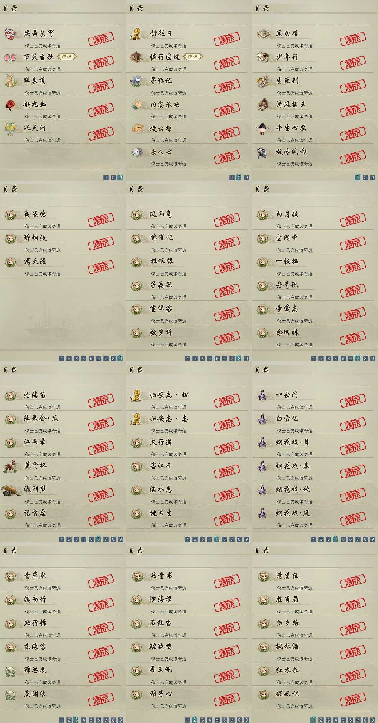 【奇遇】17个[黑白路, 平生心愿, 惜往日, 少年行, 故园风雨, 清风捕王, 侠行囧途, 寻猫记, 庆舞良宵, 万灵当歌, 生死判, 凌云梯, 赴九幽, 度人心, 旧宴承欢, 泛天河, 拜春擂]