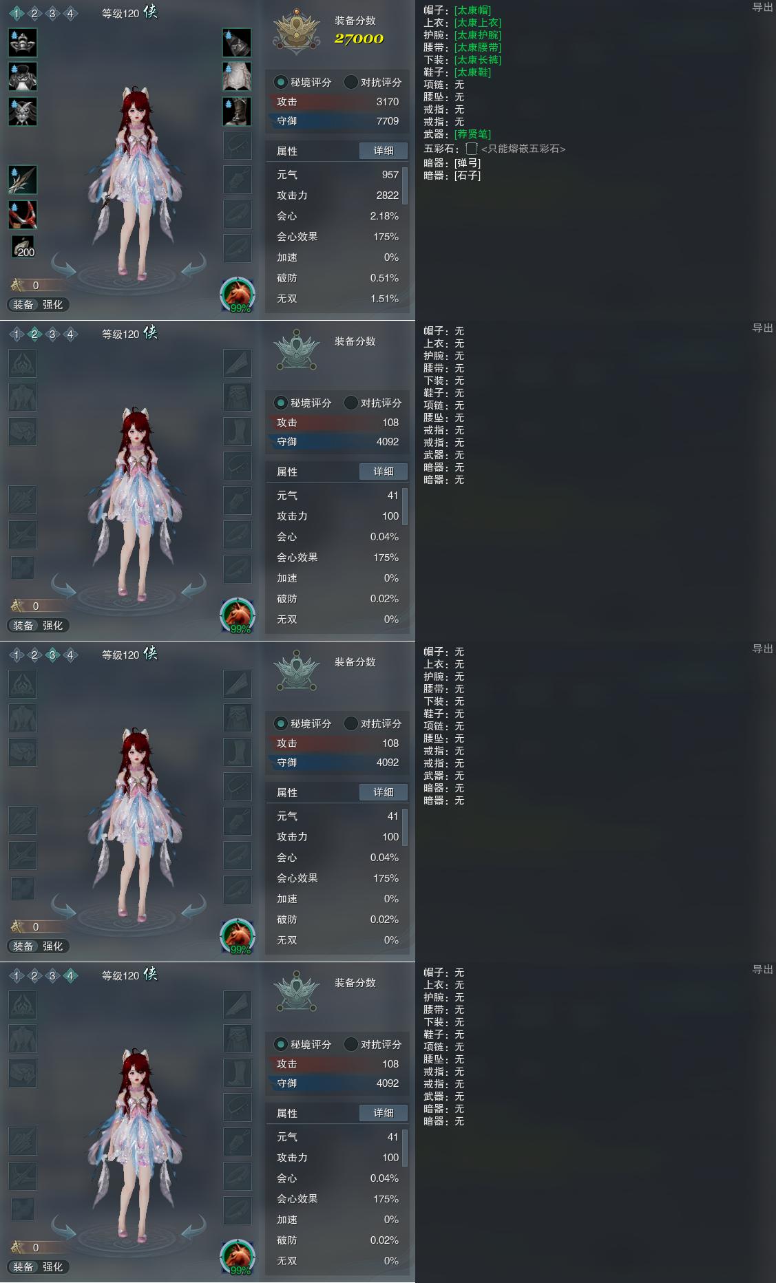 【装备】装备一27000,装备二0,装备三0,装备四0