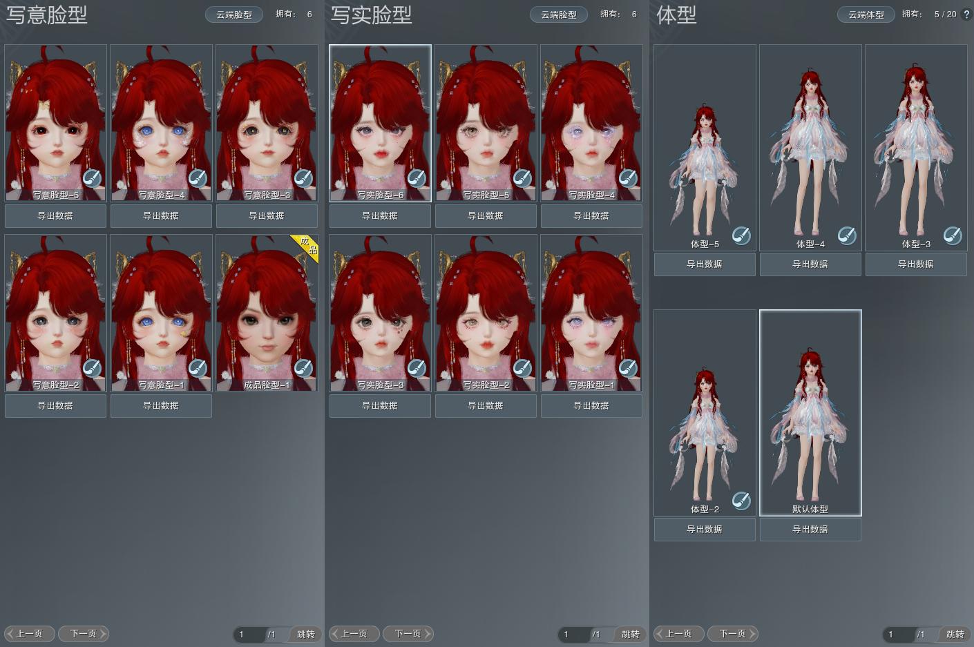 【捏脸】写意脸型6个,写实脸型6个,体型5个