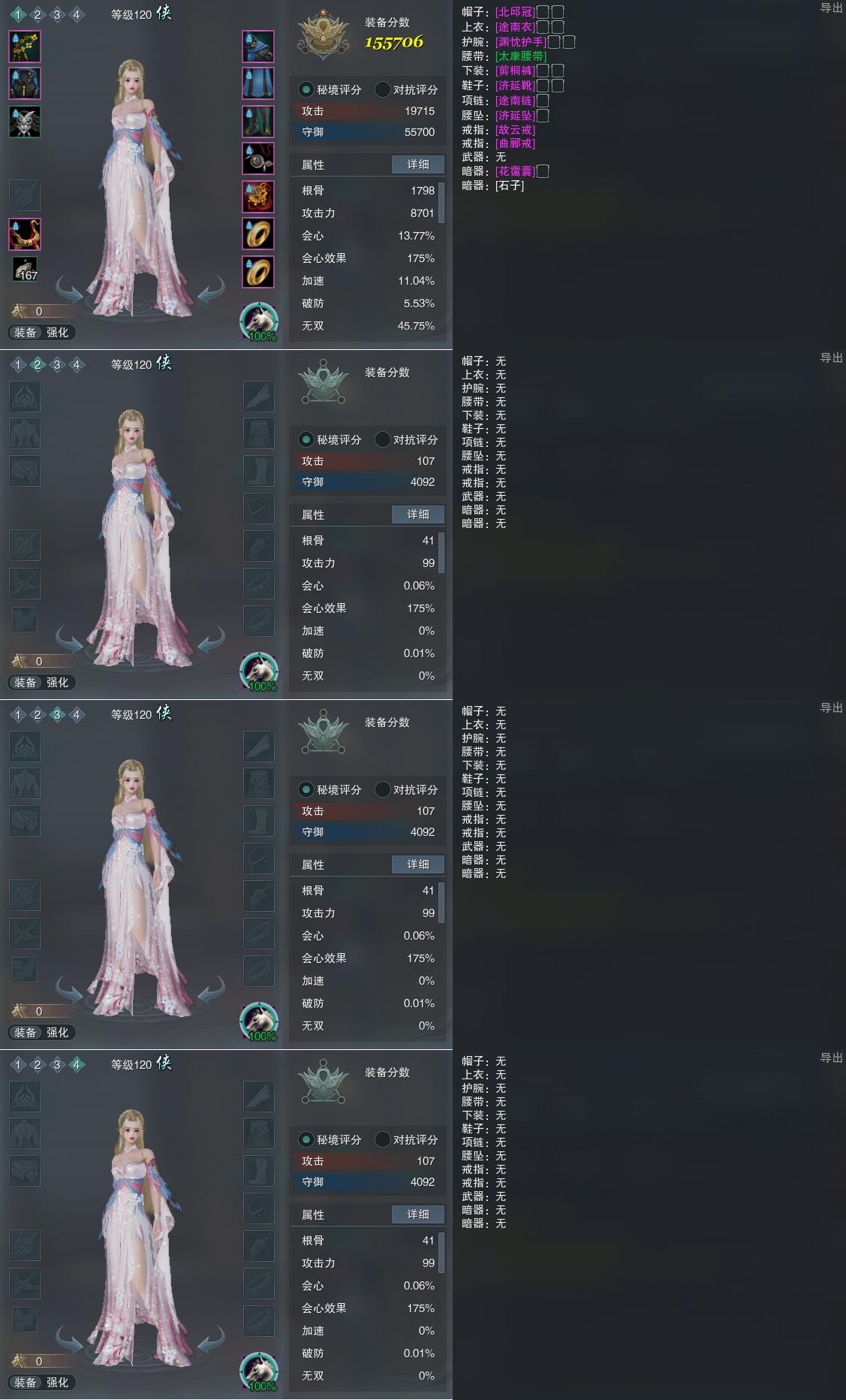 【装备】装备一155706,装备二0,装备三0,装备四0