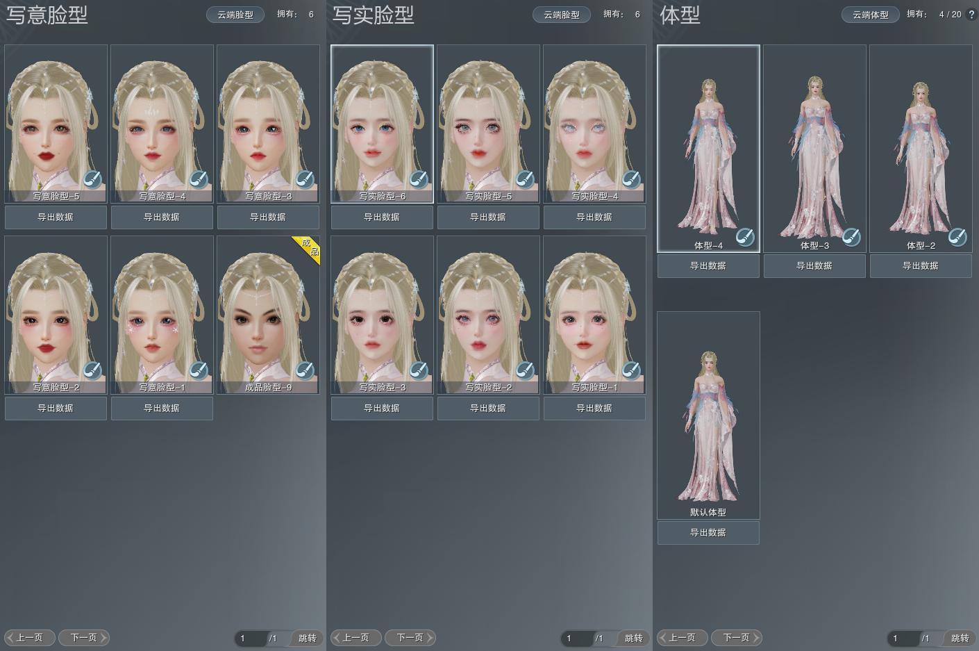 【捏脸】写意脸型6个,写实脸型6个,体型4个
