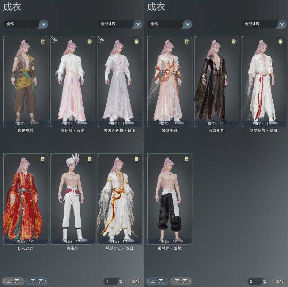 【成衣】总计11件,单盒成衣3件,限时限量4件,商城4件,下架0件