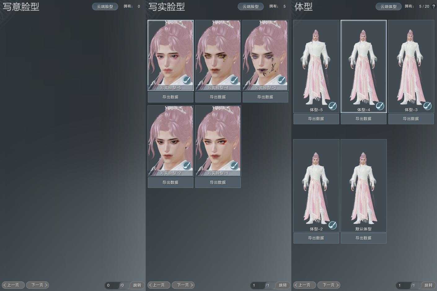 【捏脸】写意脸型0个,写实脸型5个,体型5个