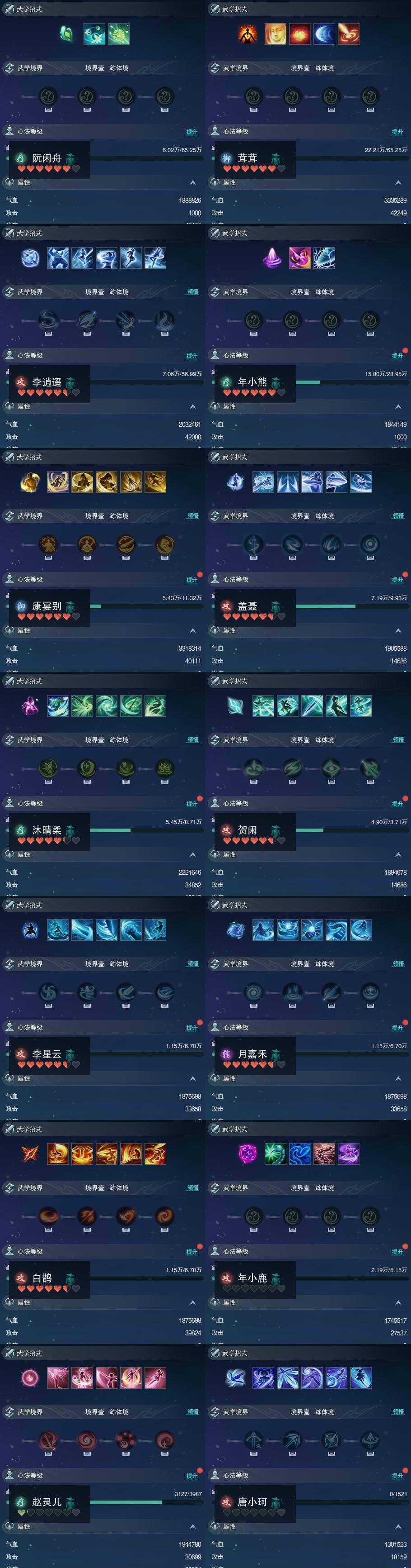【同伴】阮闲舟81级境界壹,茸茸81级境界壹,李逍遥80级境界壹,年小熊75级境界壹,康宴别68级境界壹,盖聂67级境界壹,沐晴柔66级境界壹,贺闲66级境界壹,李星云64级境界壹,月嘉禾64级境界壹,白鹊64级境界壹,年小鹿62级境界壹,赵灵儿40级境界壹,唐小珂1级境界壹
