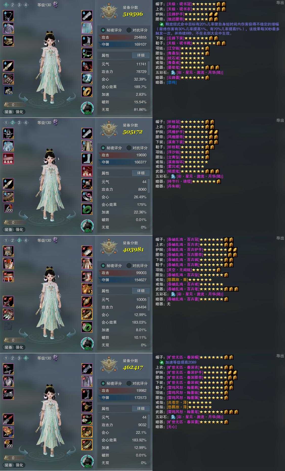 【装备】130级,花间游PVE519596,离经易道PVE505172,花间游PVP403981,离经易道PVP462417