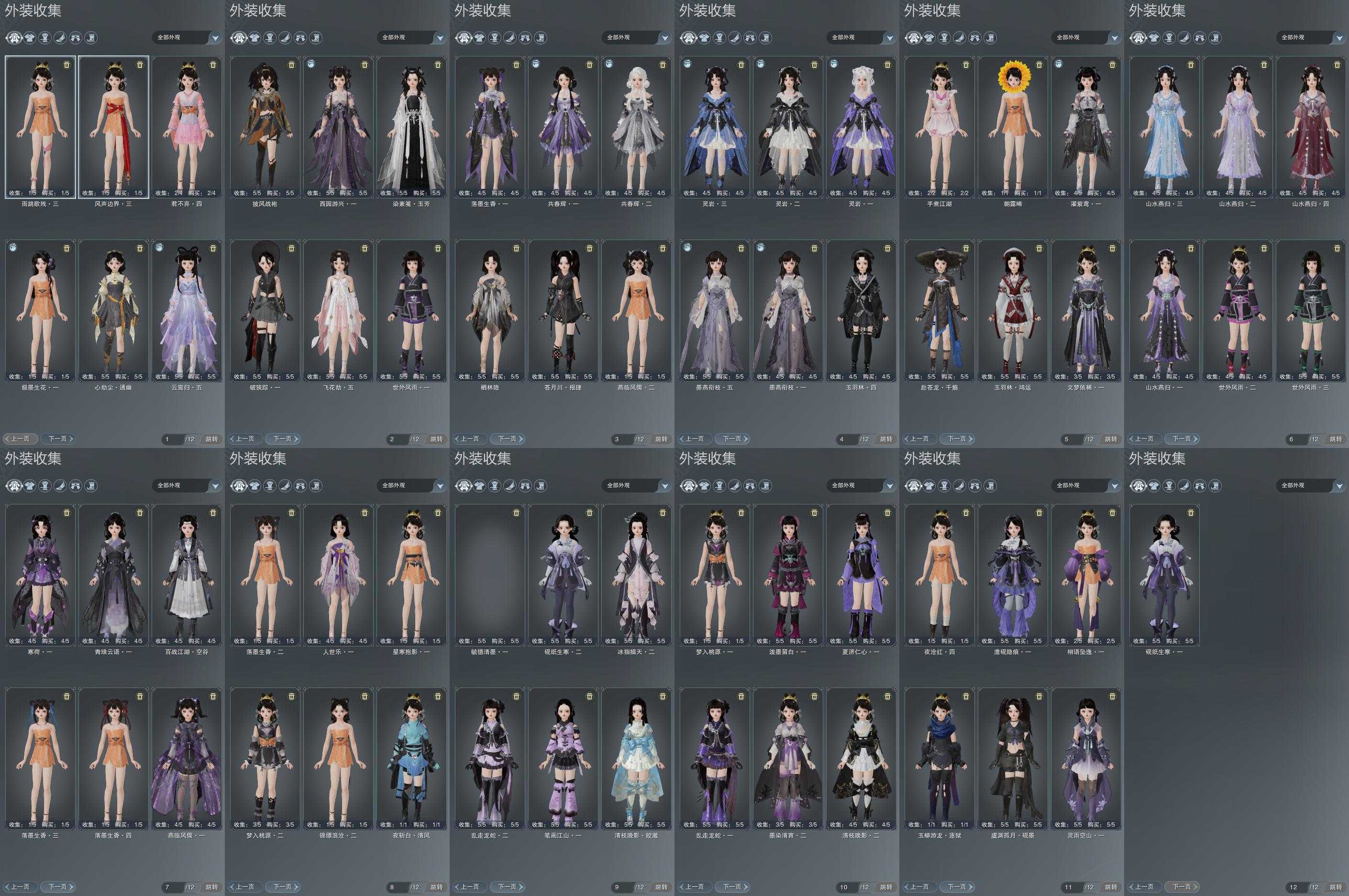 限时限量:[蓝舞步, 霆螭月华, 十三万资历衣, 烟花套, 镜湖吹荷, 点寒星沉玉, 十二周年工作服, 客行逍遥夜影, 客行逍遥天旷, 小红龙衣, 一期福袋成衣, 十三周年成衣, 梦生秋淡云, 蓝水母, 粉水母, 天河对影云砂, 清商风饮驻春, 清商风饮流萦, 万川青绿黛瑾, 十四周年工作服, 云闲归鹤, 黄清光, 蓝绮阁, 浮光绡, 蓝碧海]