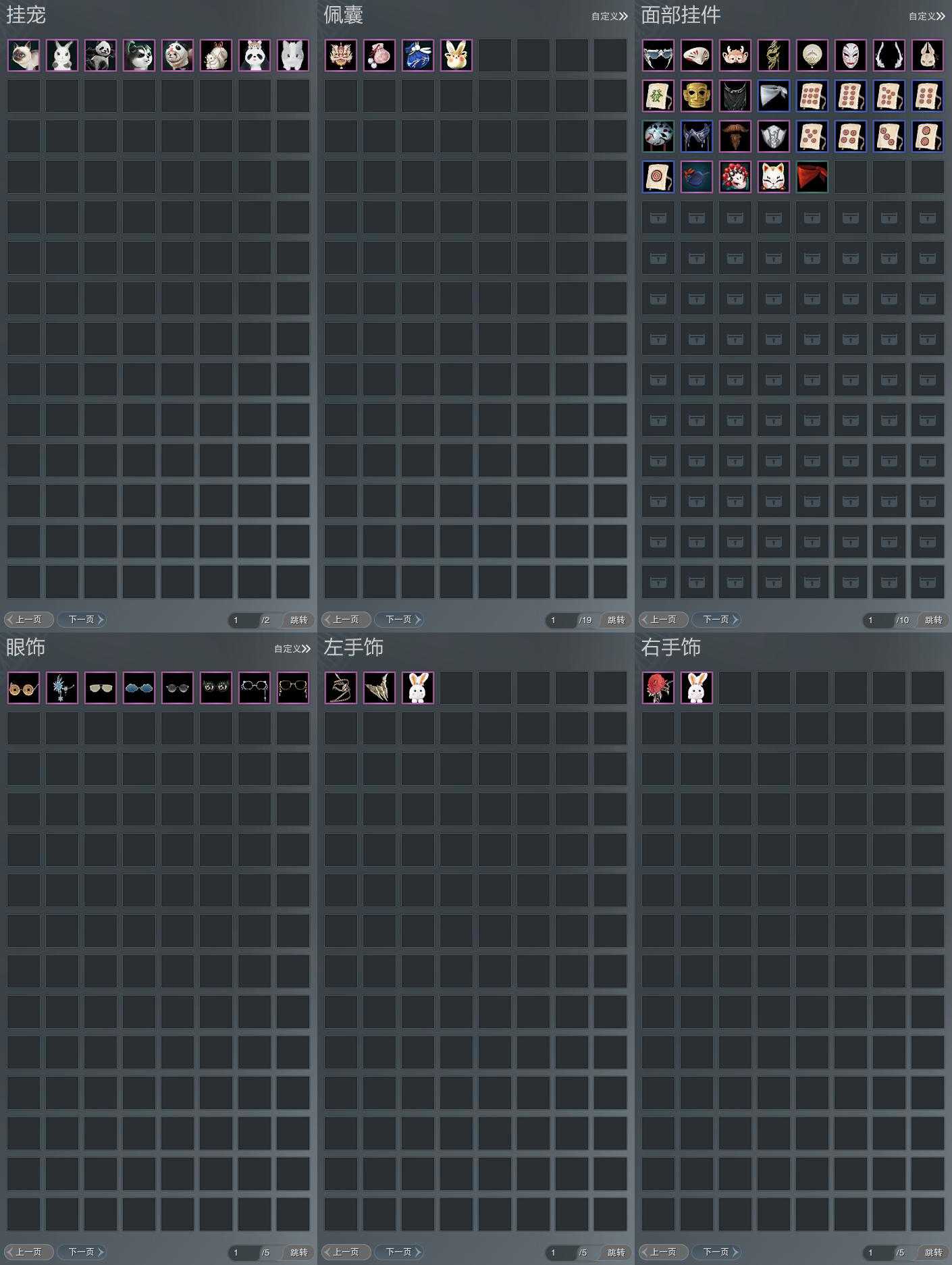 【腰挂】324个[兔尾, 亢龙锏·玄机, 绮罗, 燕月盒腰挂, 蓝蝴蝶腰挂]