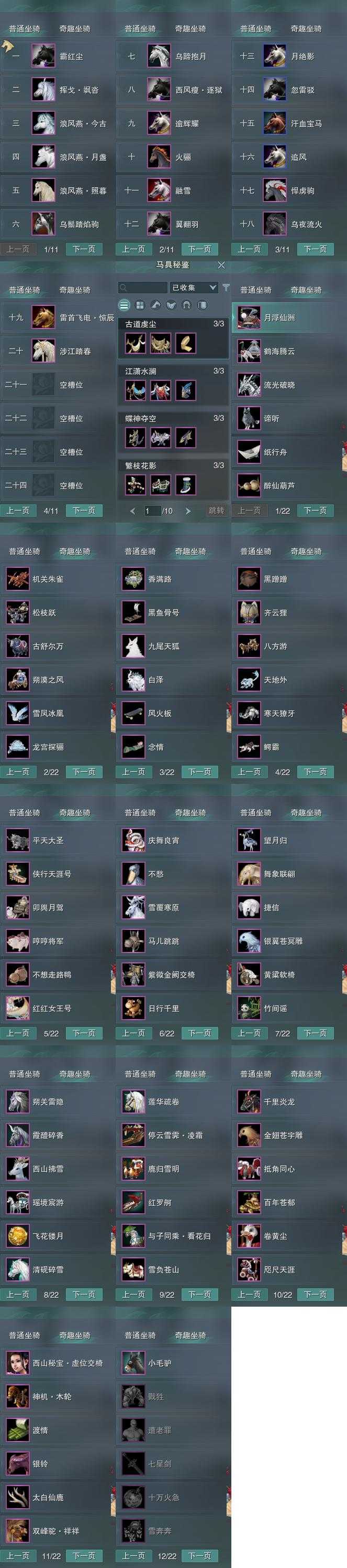 【坐骑】20个[西风瘦逐狱, 乌蹄抱月, 挥戈飒沓, 浪风燕今古, 霸红尘, 雷首飞电惊辰, 乌鬃踏焰驹]