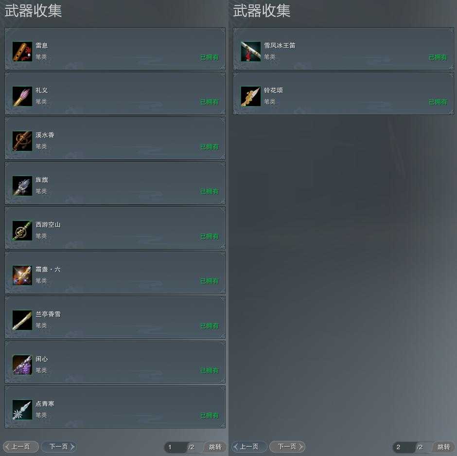 【拓印】12页外观收集,11武器拓印,拓印95小CW霜盏,拓印95CW兰亭,拓印110CW闲心,拓印门派特效雪凤冰王笛