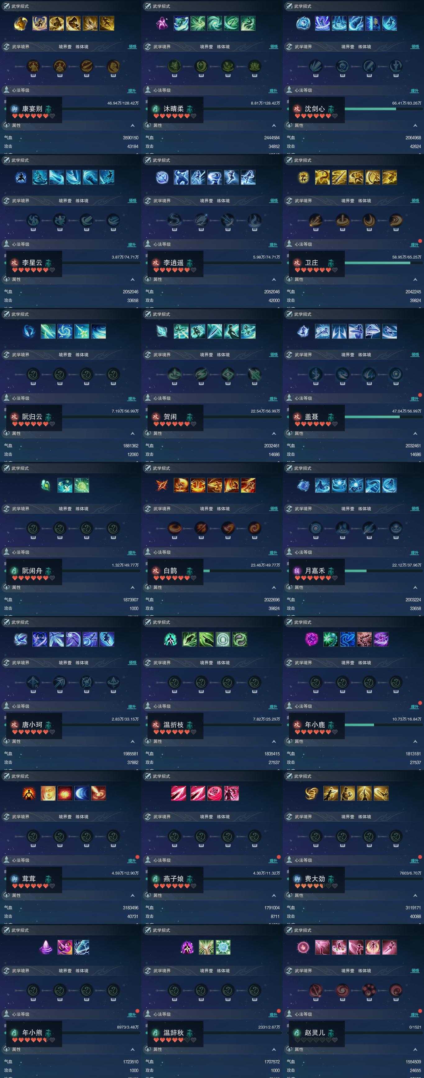 【同伴】康宴别86级境界壹,沐晴柔86级境界壹,沈剑心84级境界壹,李星云82级境界壹,李逍遥82级境界壹,卫庄81级境界壹,阮归云80级境界壹,贺闲80级境界壹,盖聂80级境界壹,阮闲舟79级境界壹,白鹊79级境界壹,月嘉禾77级境界壹,唐小珂76级境界壹,温折枝74级境界壹,年小鹿71级境界壹,茸茸69级境界壹,燕子娘68级境界壹,费大劲64级境界壹,年小熊59级境界壹,温辞秋57级境界壹,赵灵儿1级境界壹