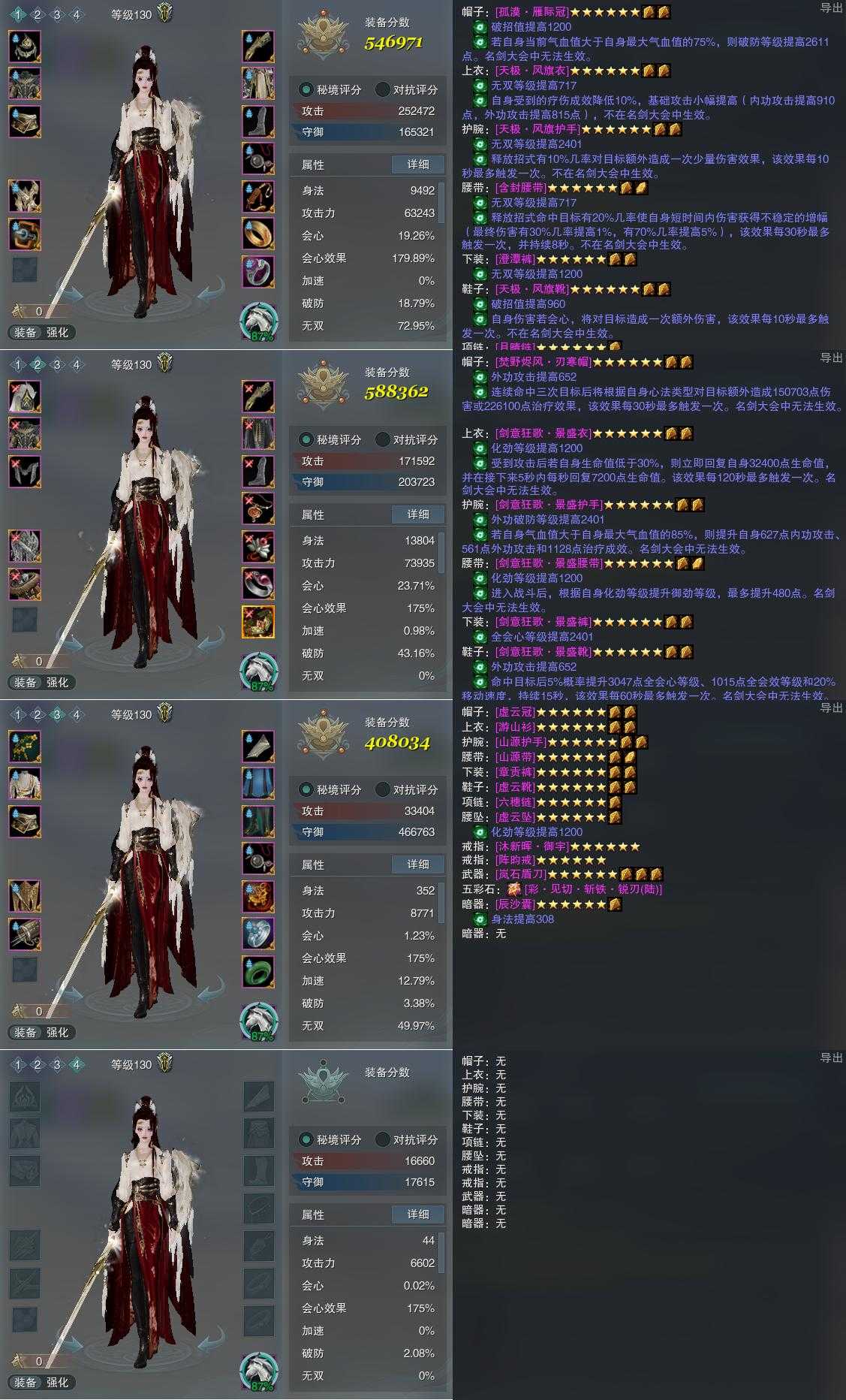【装备】130级,分山劲PVE546971,分山劲PVP588362,铁骨衣PVE408034,装备四0