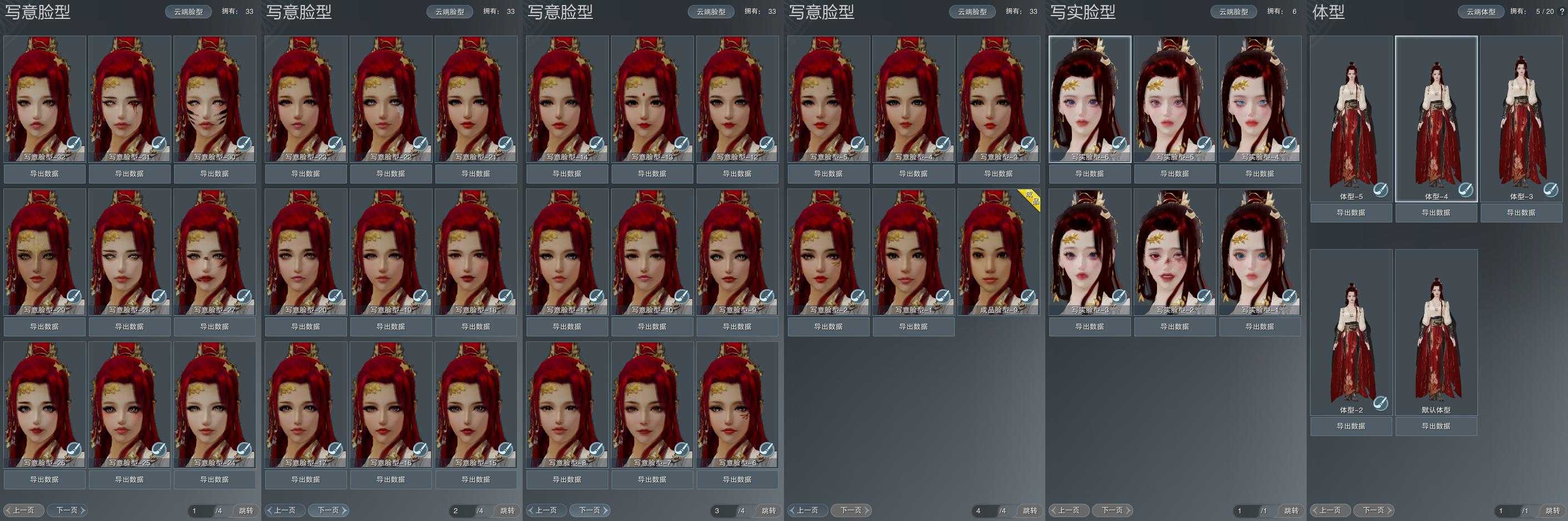 【捏脸】写意脸型33个,写实脸型6个,体型5个