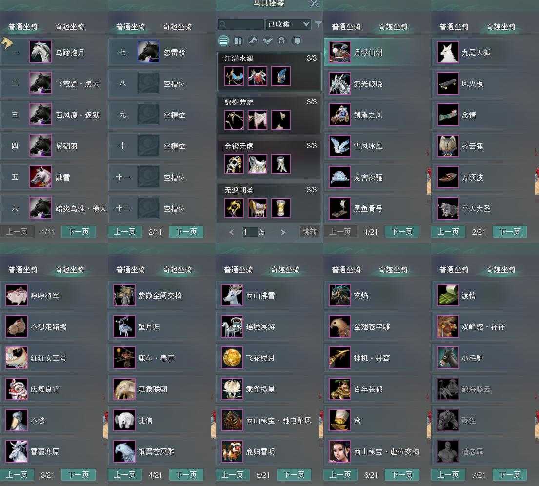 【坐骑】7个[踏炎横天, 西风瘦逐狱, 飞霞骠黑云, 乌蹄抱月]